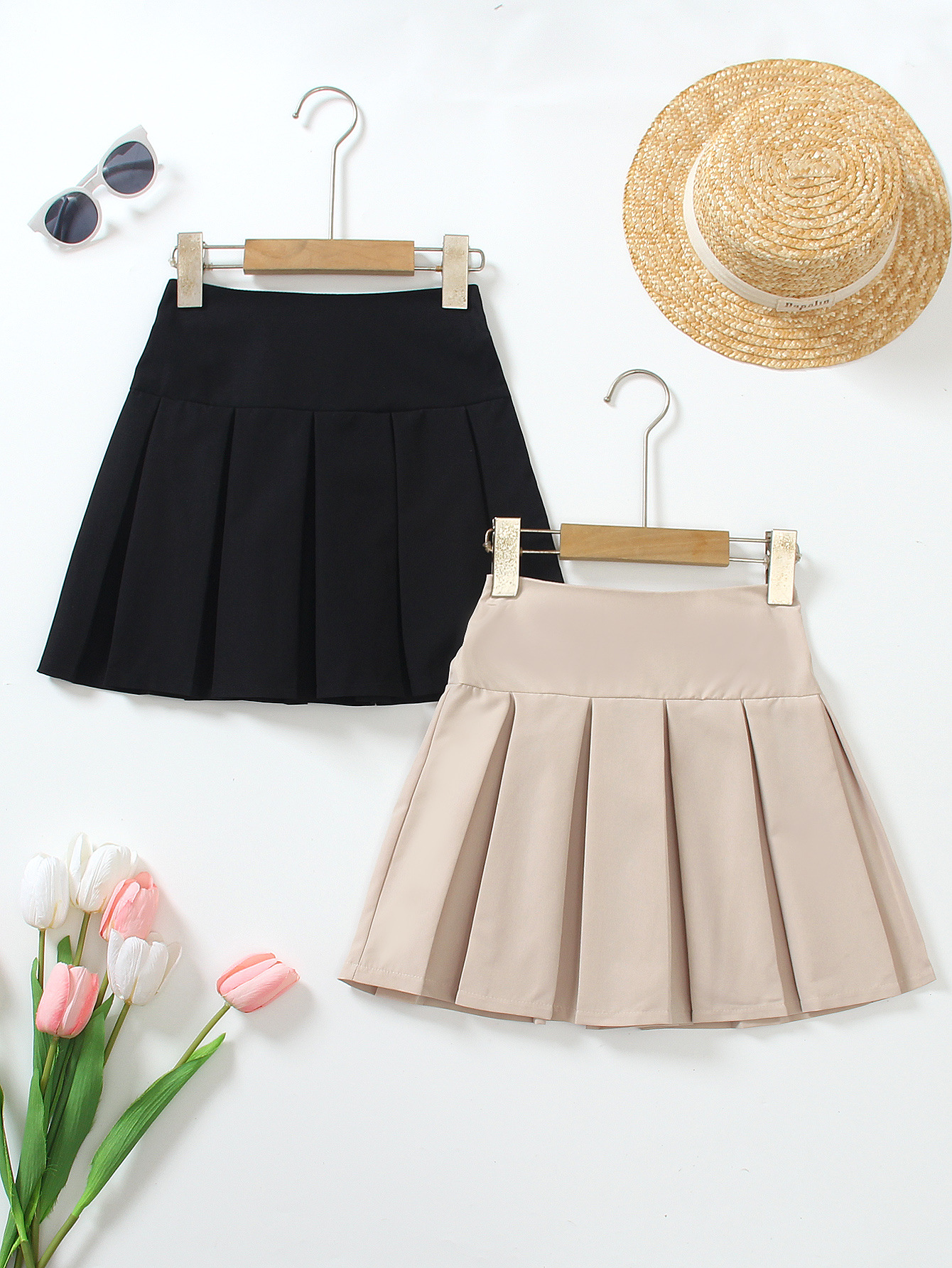 여아 2피스 패셔너블 캐주얼 다용도 허리 주름 스커트 대학 스타일 파티 외출 봄 여름 선물