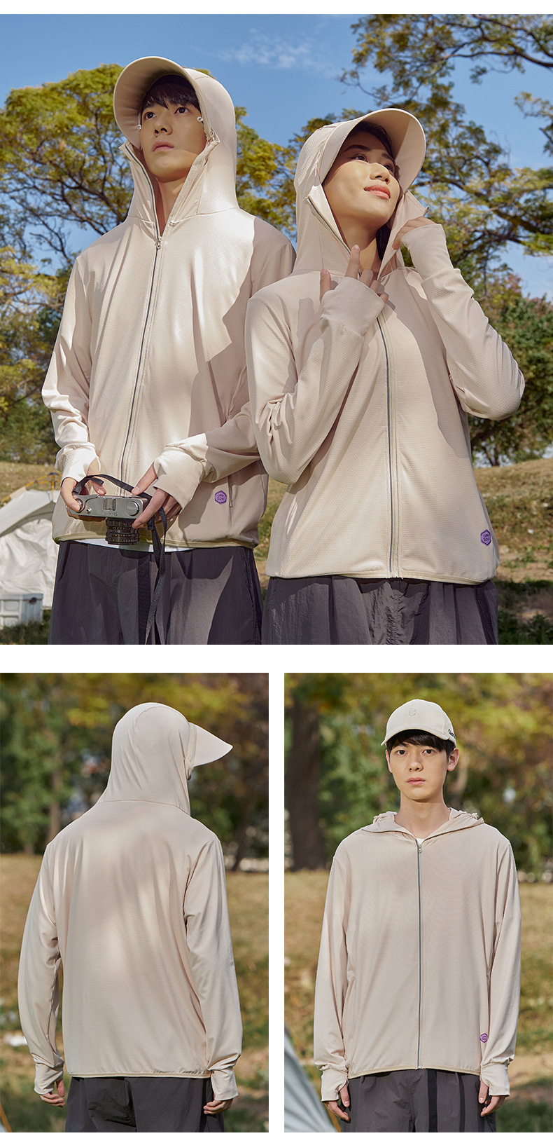 여름 야외 태양 보호 의류 여성 동일 스타일 커플 태양 보호 의류 분리 가능한 모자 브림 빠른 건조 낚시 의류 남성 안티 퍼플