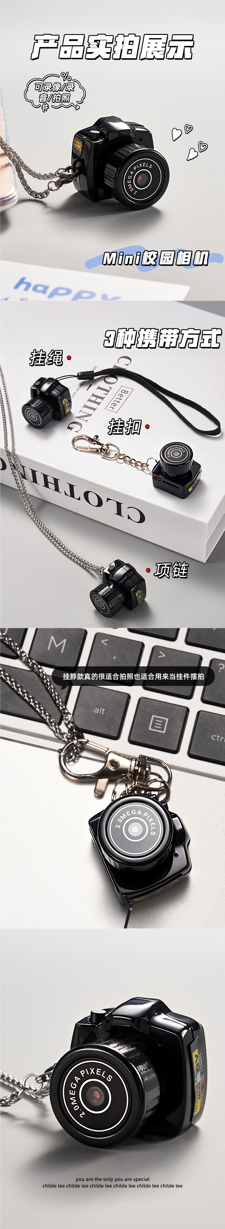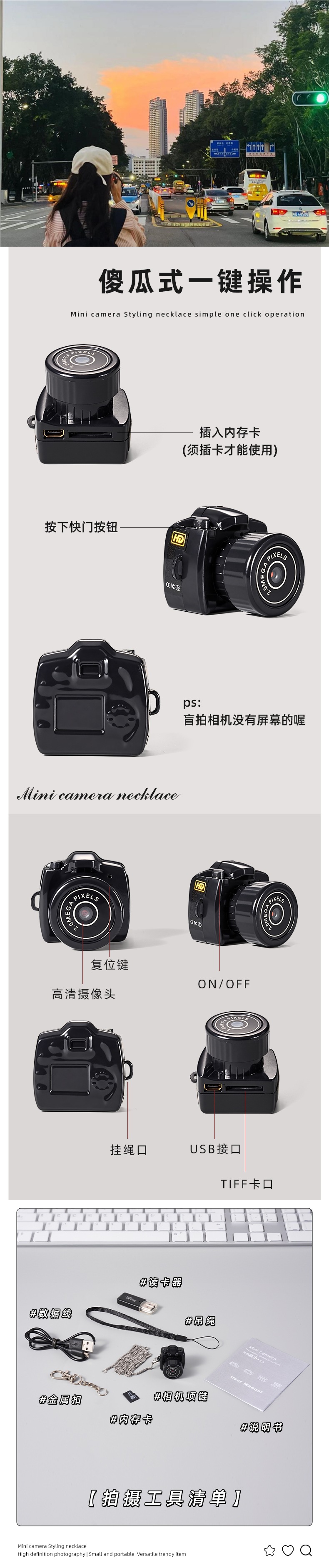 • *[생일 선물 가방 포장] 카메라 + 목걸이 + 8G 메모리 카드 + 카드 리더기(녹화 및 휴대폰 전송 가능) *