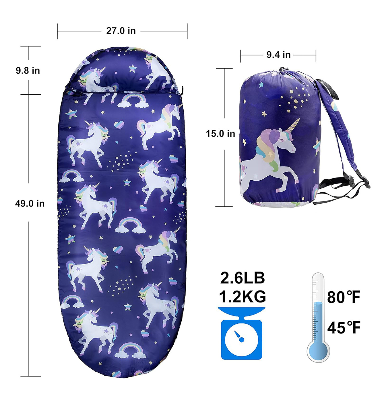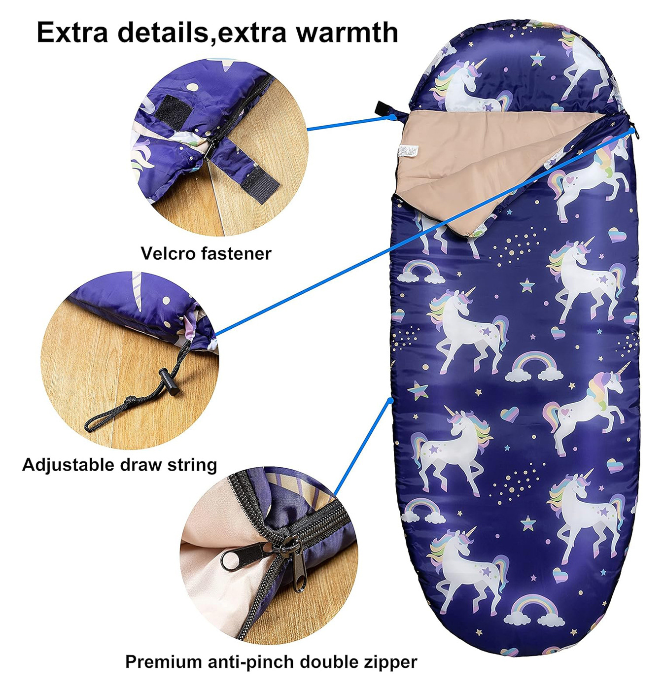 공장 사용자 정의 야외 어린이 침낭 만화 패턴 침낭 어린이 침낭 편리한 저장