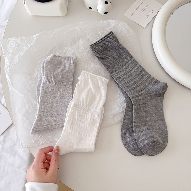여름 여성을 위한 일본식 게으른 스타일 느슨한 컬링 양말 얇은 통기성 단색 기본 다용도 스타킹