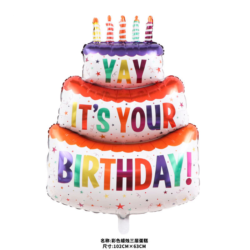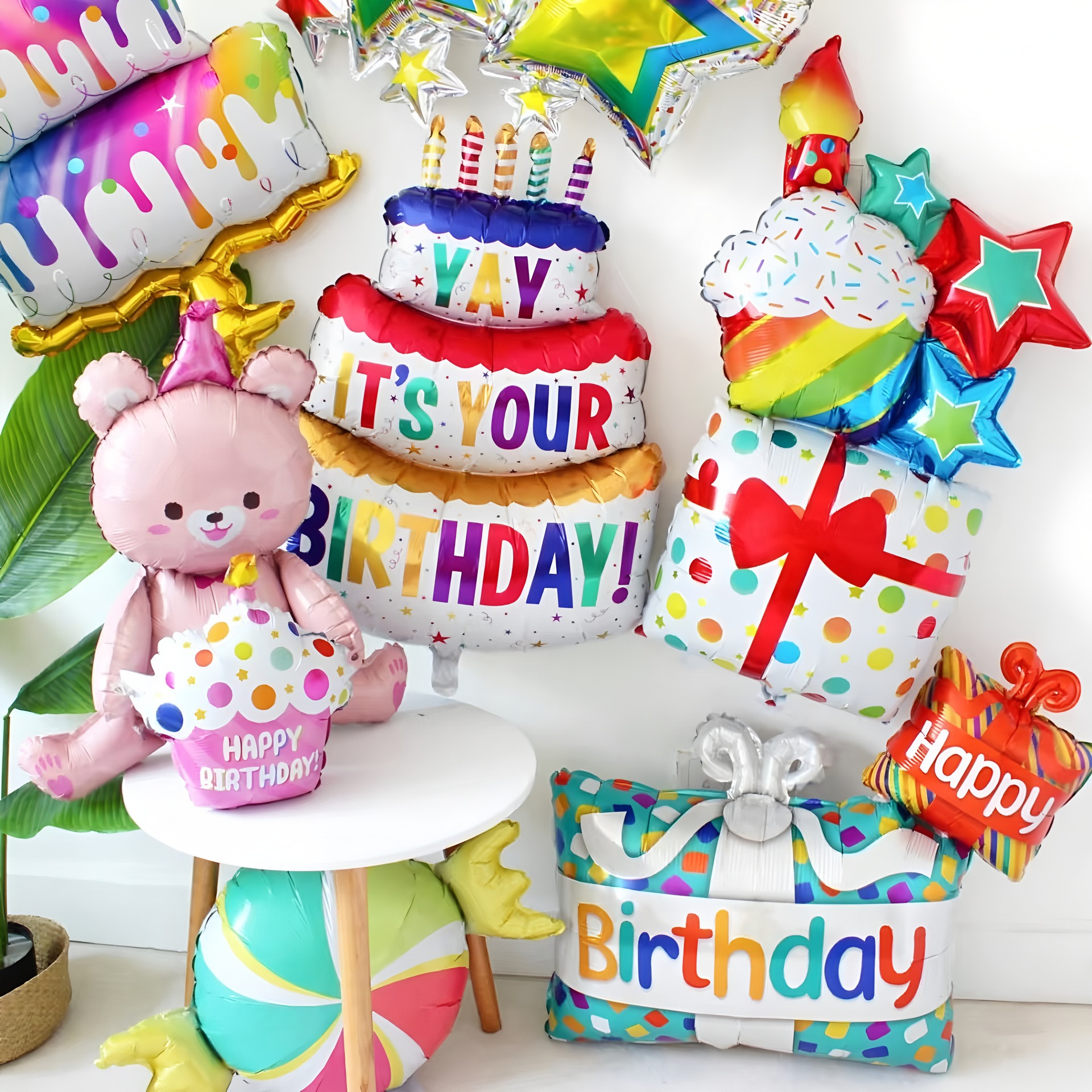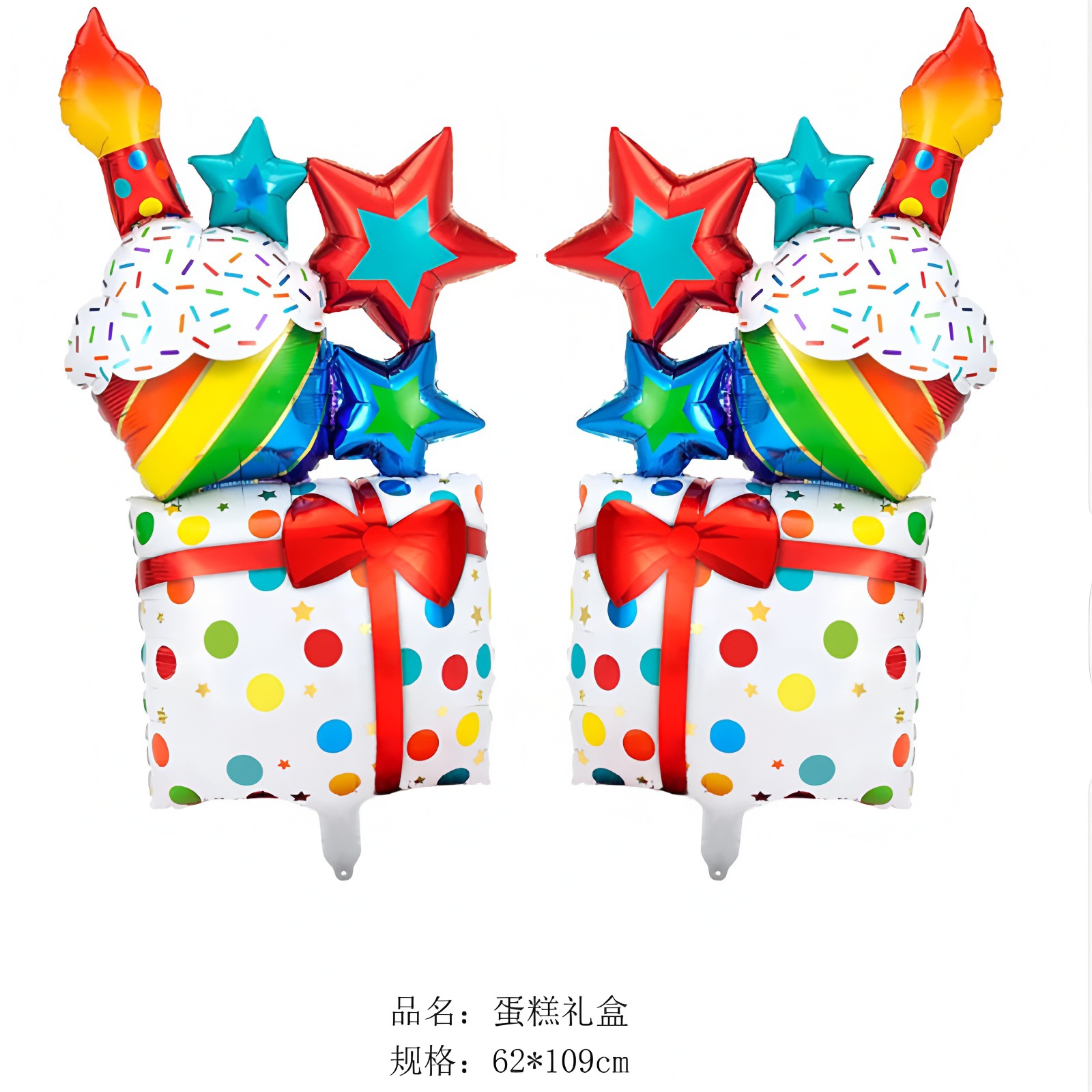 다채로운 생일 케이크 촛불 선물 상자 알루미늄 필름 풍선 사진 소품 어린이 베이비 파티 장식 장면스토어 가기