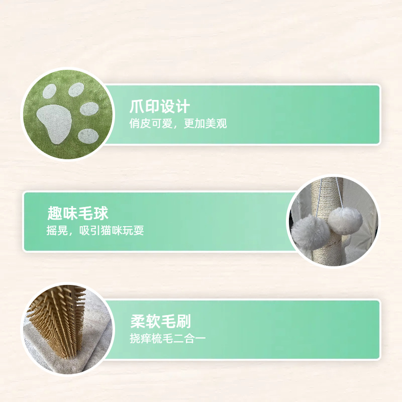 발자국 고양이 둥지와 고양이 나무가 하나로 통합된 자체 자극 장난감, 내마모성 및 비떨어지는 고양이 용품