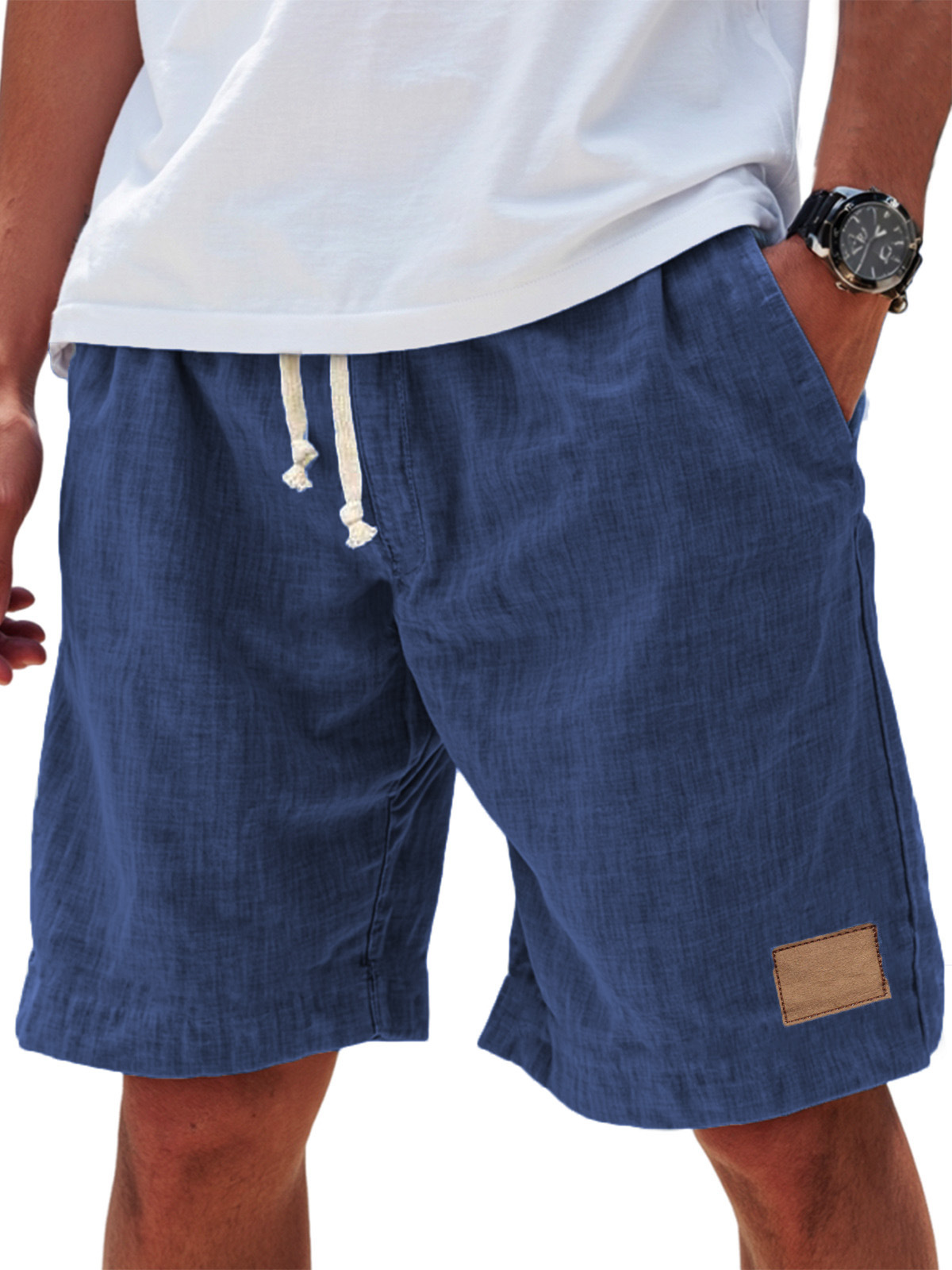 130091 얇은 소재 포켓 가죽 라벨 해외 아마존 신상품 린넨 느낌 반바지 캐주얼 팬츠 남성 드로스트링 반바지스토어 가기