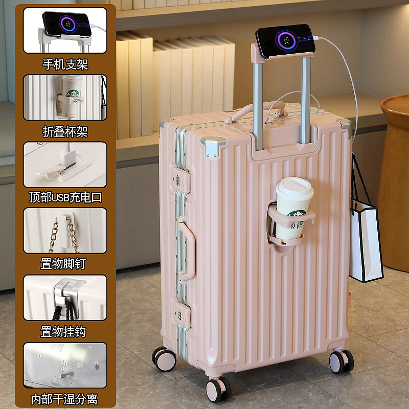 새로운 휴대용 다기능 수하물 케이스 여성용 알루미늄 프레임 충전식 대용량 여행 28 탑승 암호스토어 가기