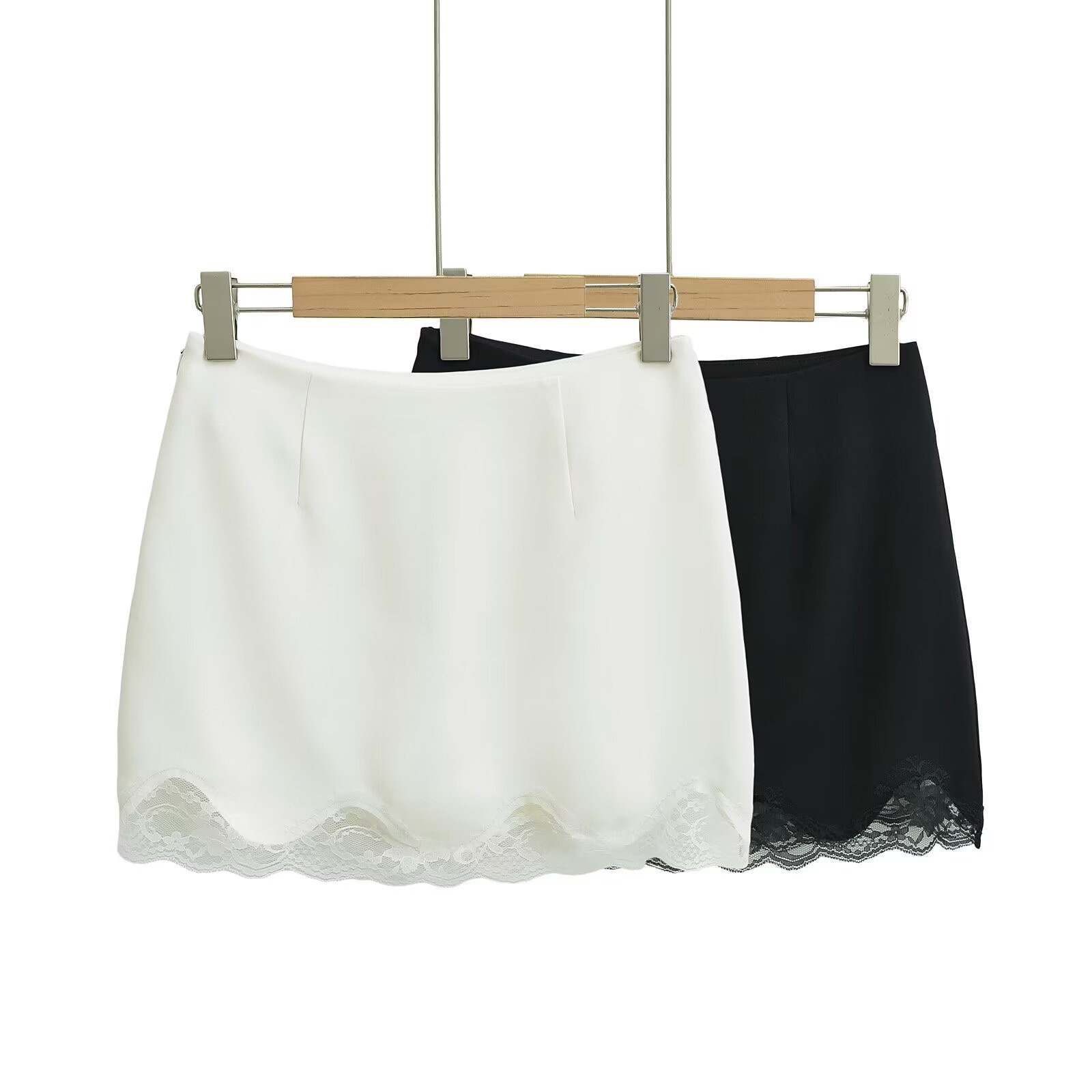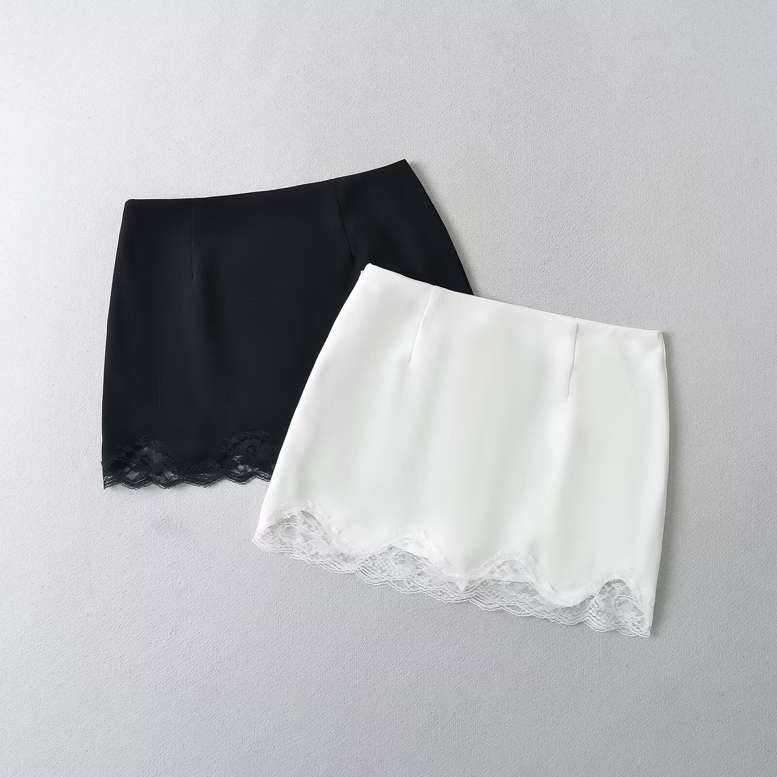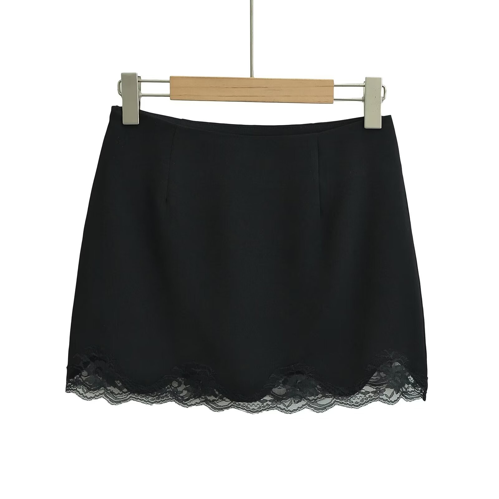 순수한 스파이스 소녀 레이스 타이트 힙 스커트 여름 새로운 사이드 지퍼 안티 러닝 미니 스커트