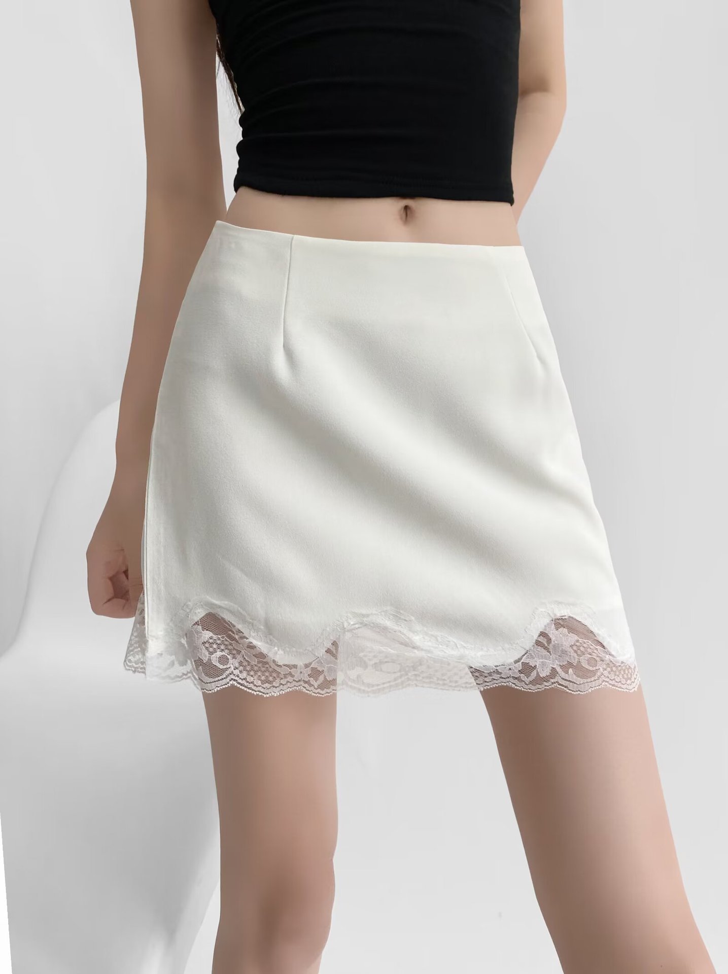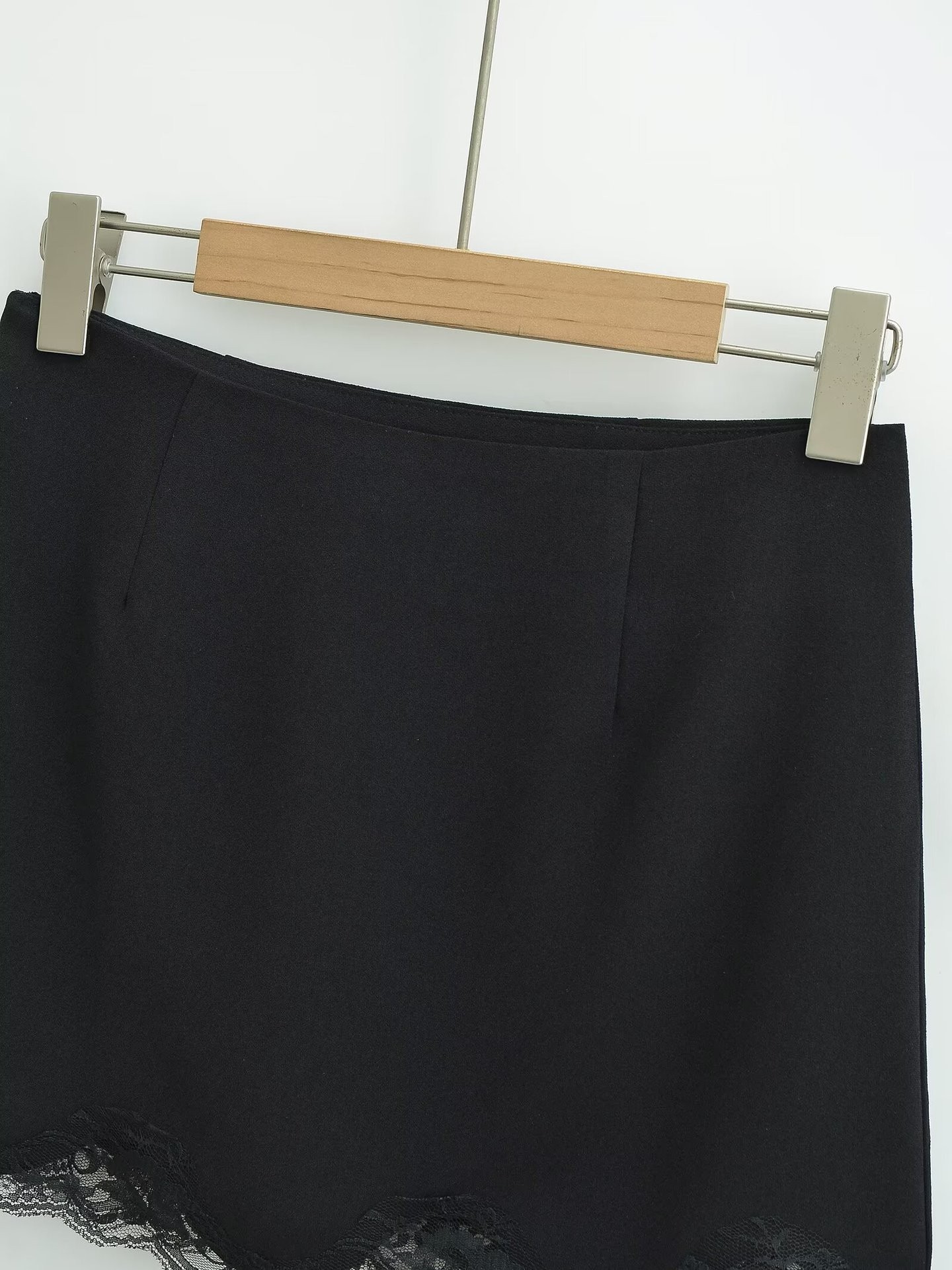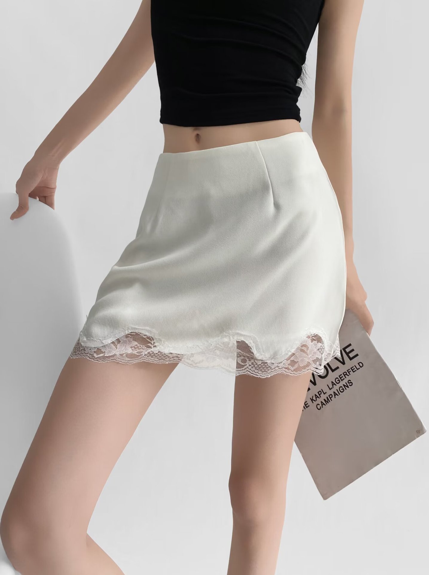 순수한 스파이스 소녀 레이스 타이트 힙 스커트 여름 새로운 사이드 지퍼 안티 러닝 미니 스커트