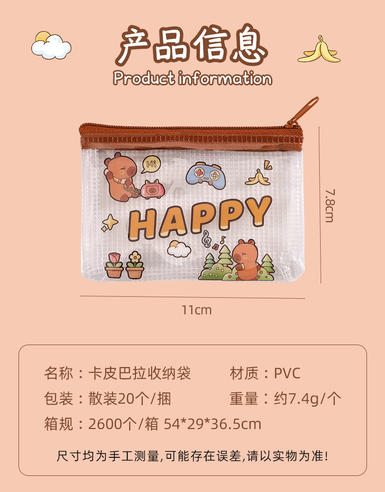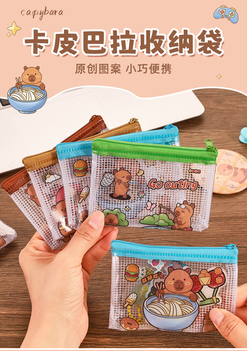 카피 발라 동전 지갑 만화 초등학교 학생 PVC 미니 가방 귀여운 휴대용 저장 가방 카피 바라 입 빨간 가방스토어 가기
