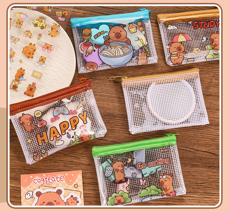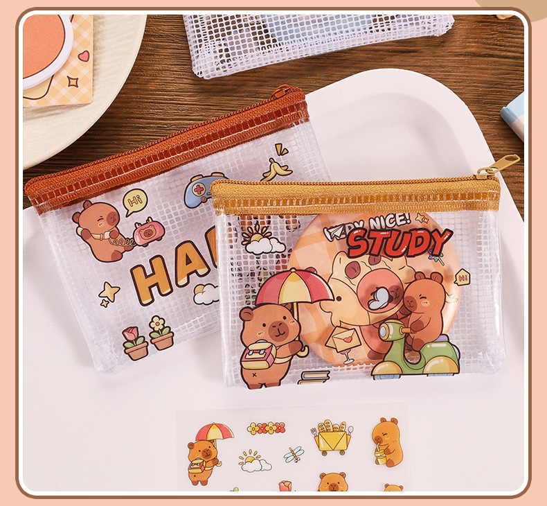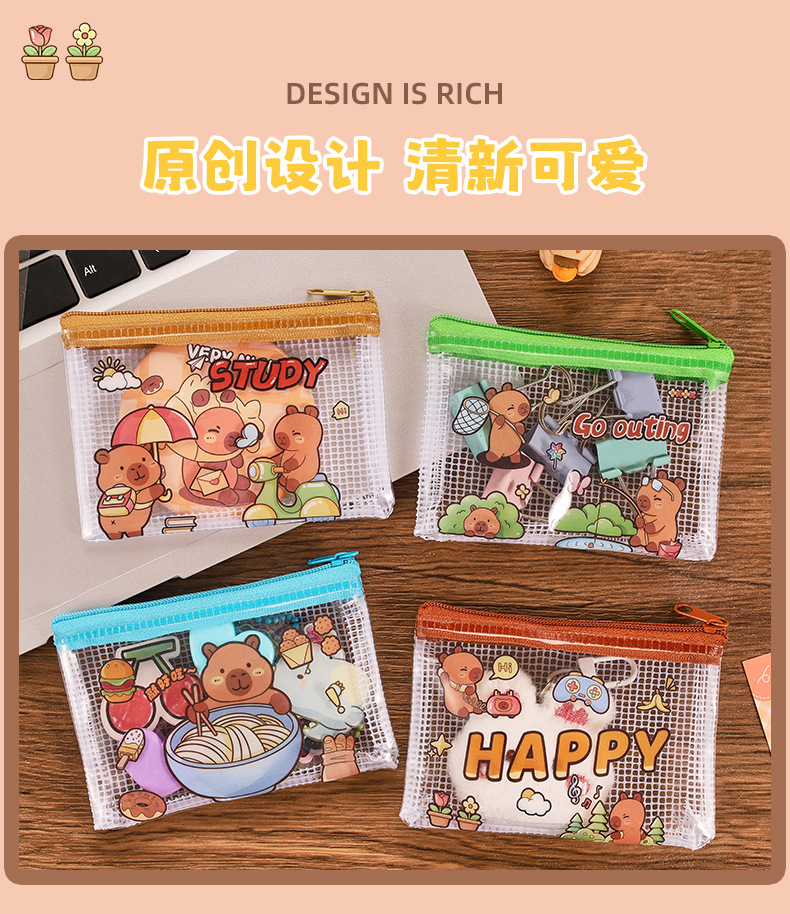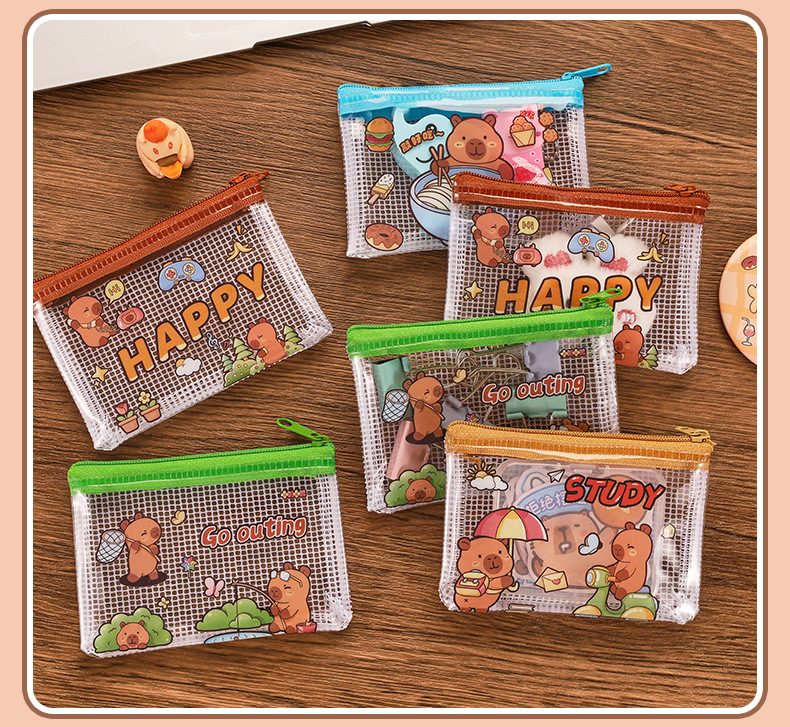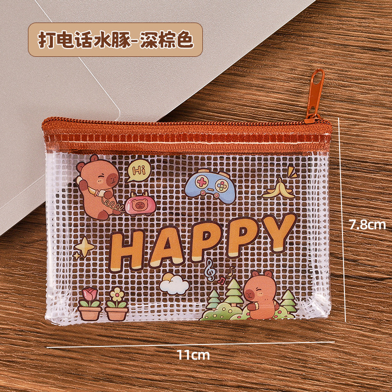 카피 발라 동전 지갑 만화 초등학교 학생 PVC 미니 가방 귀여운 휴대용 저장 가방 카피 바라 입 빨간 가방