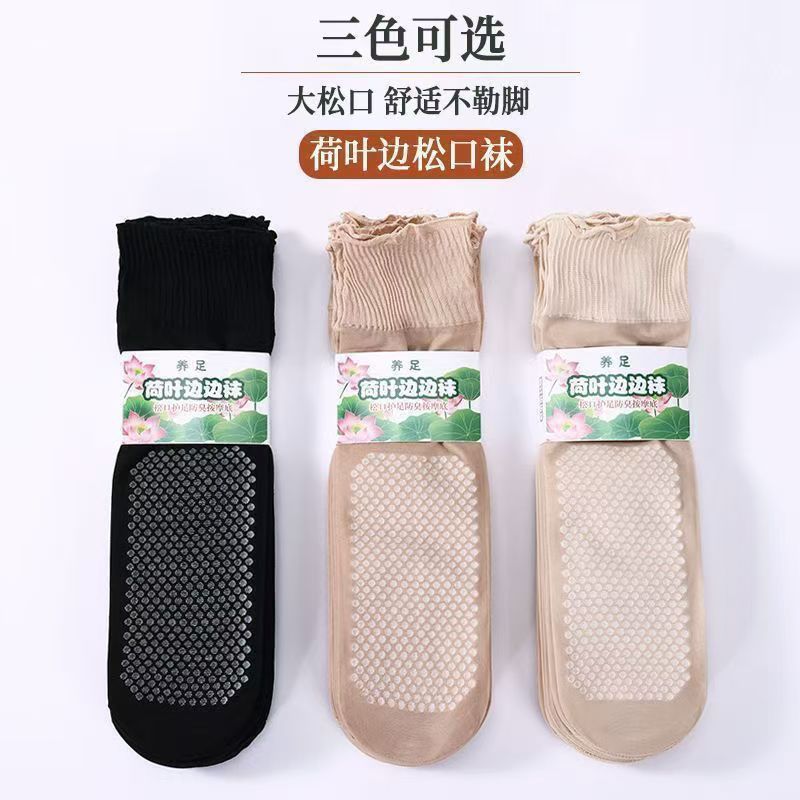 면 바닥 땀 흡수성 비 슬립 느슨한 벨벳 주름 레이스 스타킹 양말 느슨한 양말 넓은 입 양말 임산부 노인