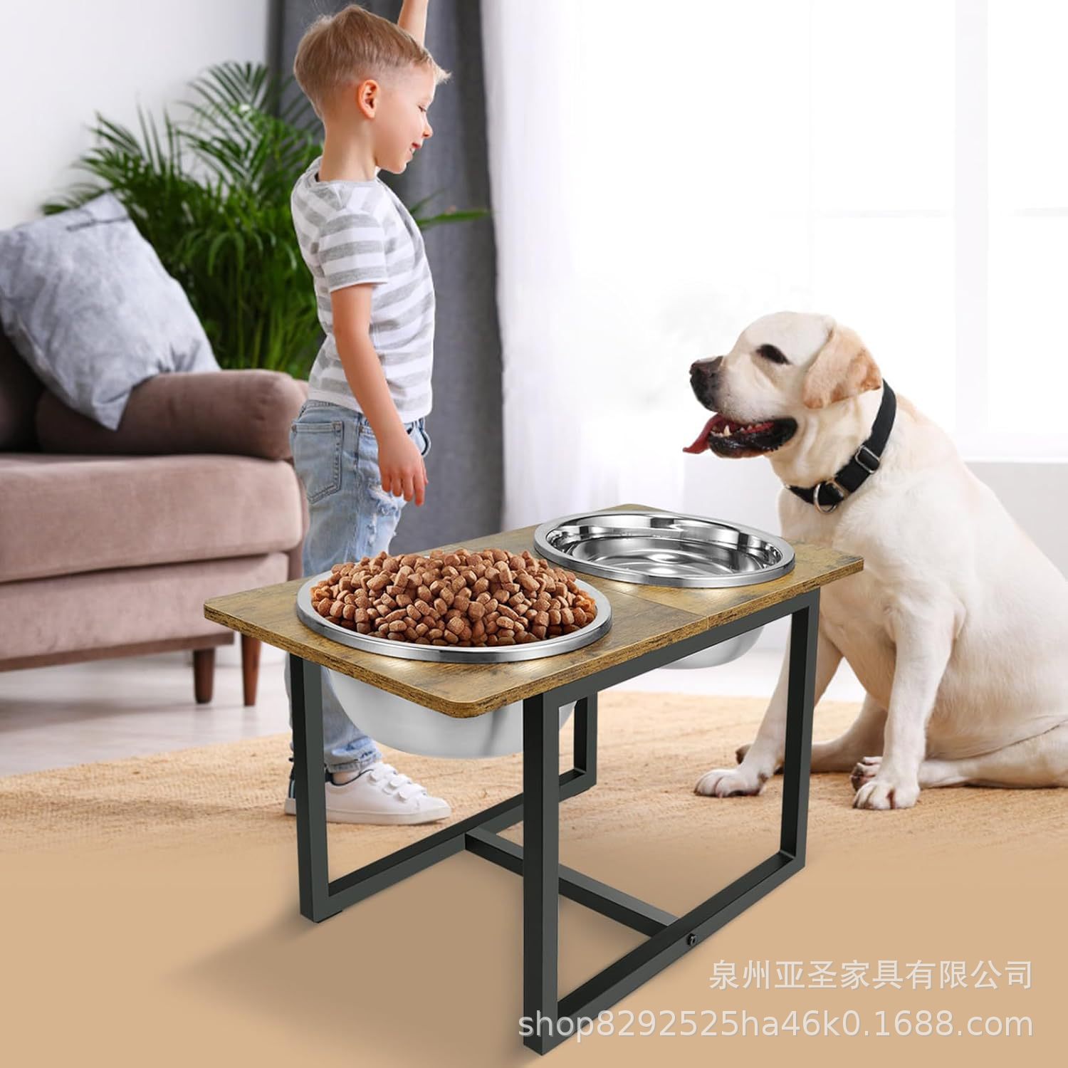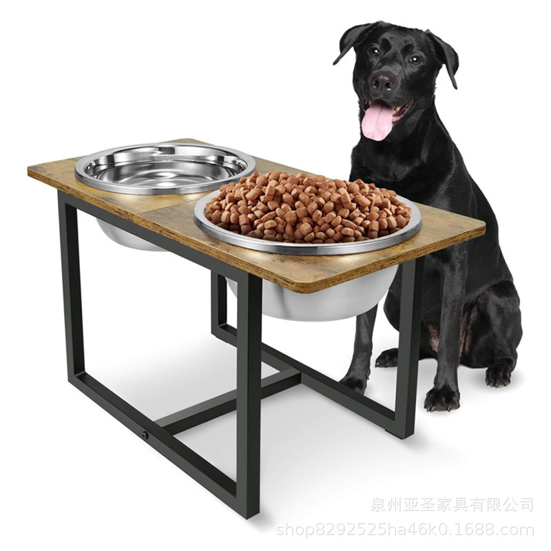 아마존 애완동물 먹이대 철제 및 목재 결합 고양이 밥그릇 랙 크로스보더 높이 조절식 애완동물 먹이통 가정용 고양이 및 개밥그릇