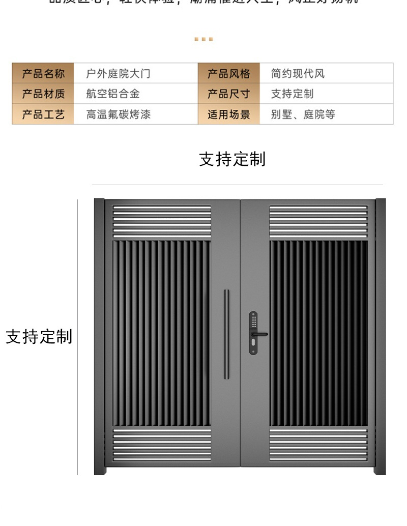 알루미늄 합금 빌라 문 중국 스타일 안뜰 문 단일 및 이중 문 스테인레스 스틸 야외 문 울타리 문 정원 셔터 문