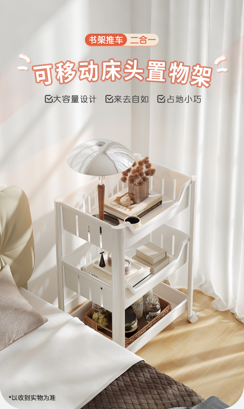 침대 옆 테이블 이동식 홈 침실 플라스틱 보관함 2025 새로운 크림 스타일 어린이 매우 좁은 침대 옆 보관함스토어 가기