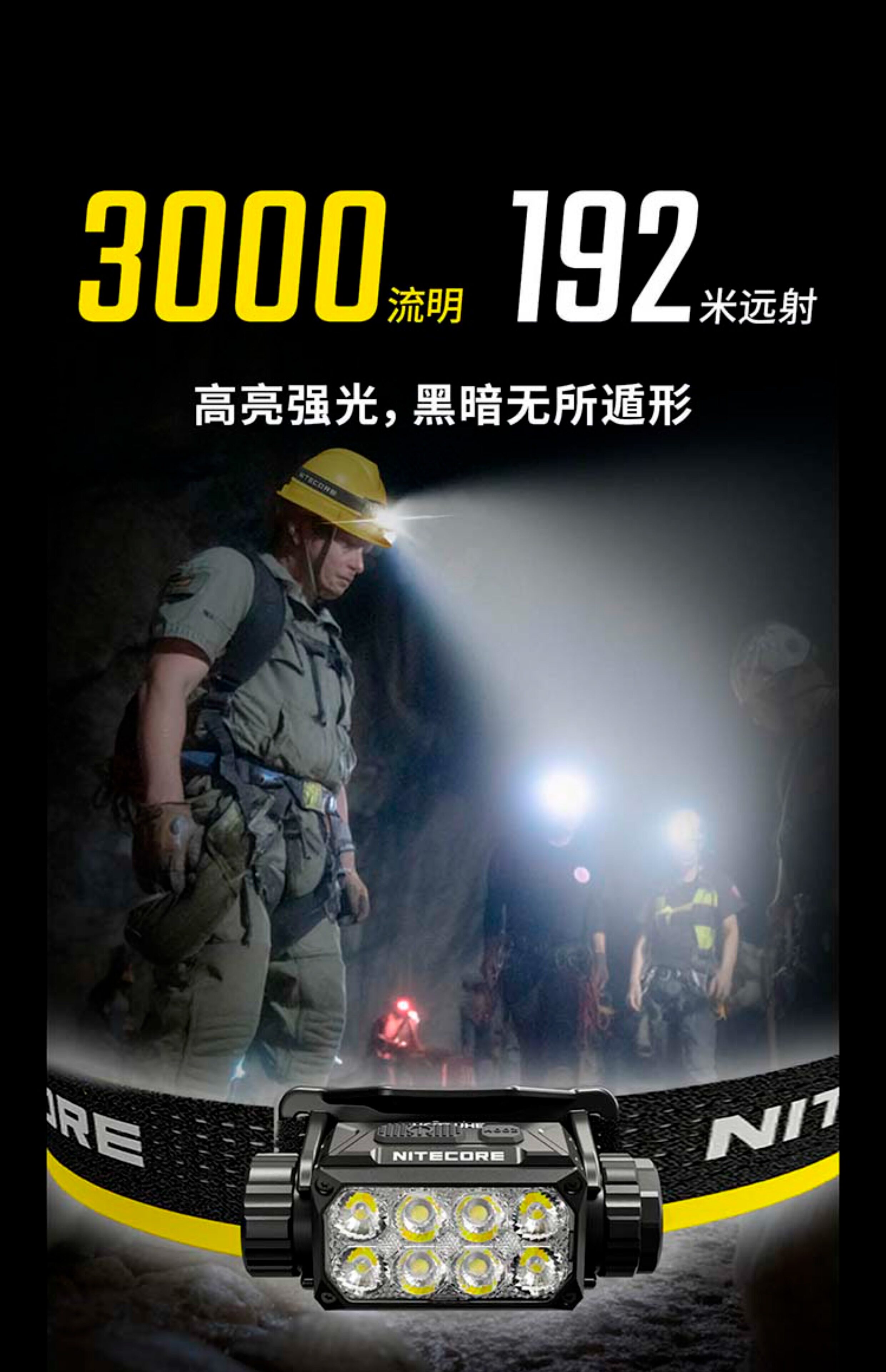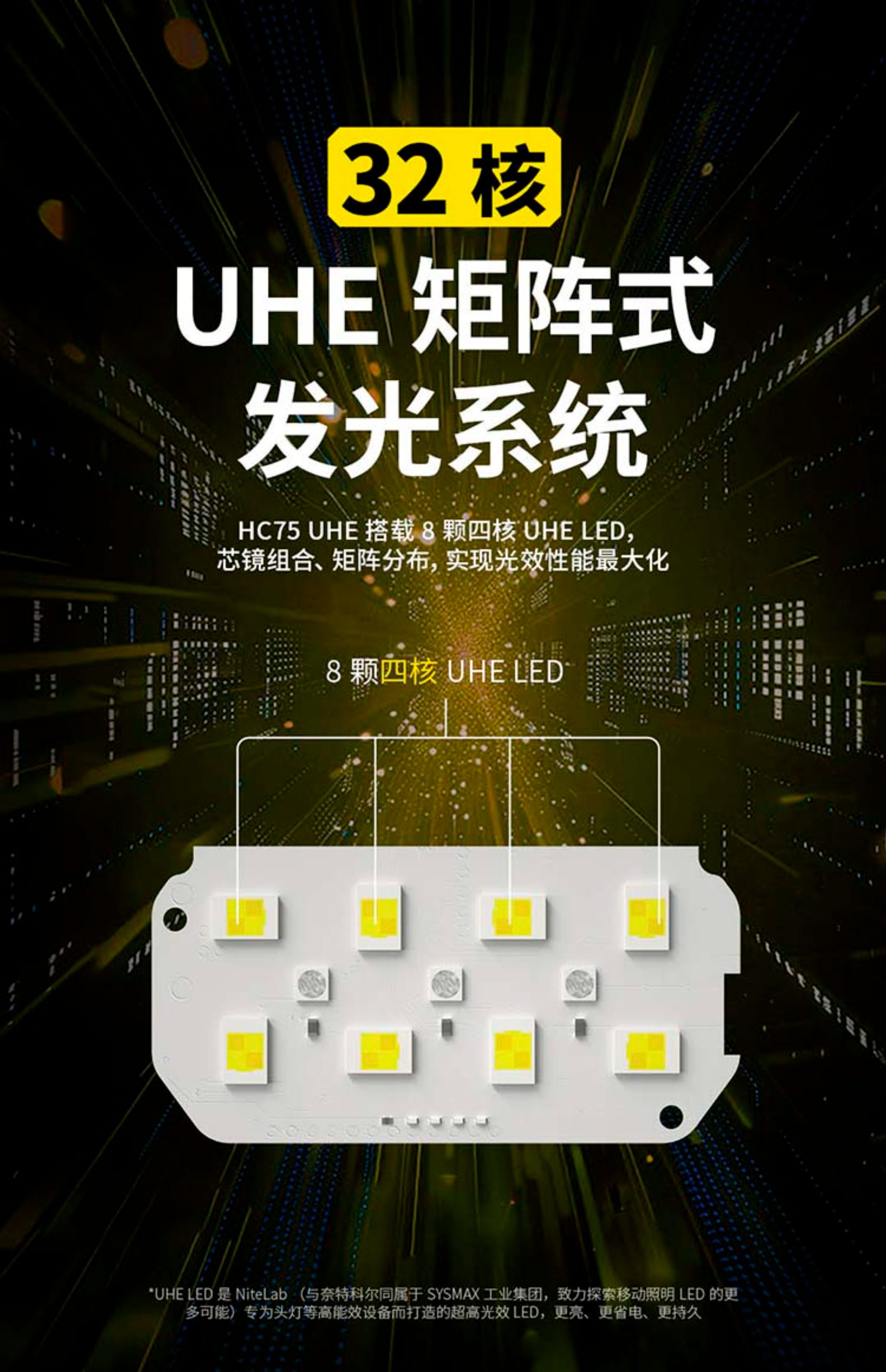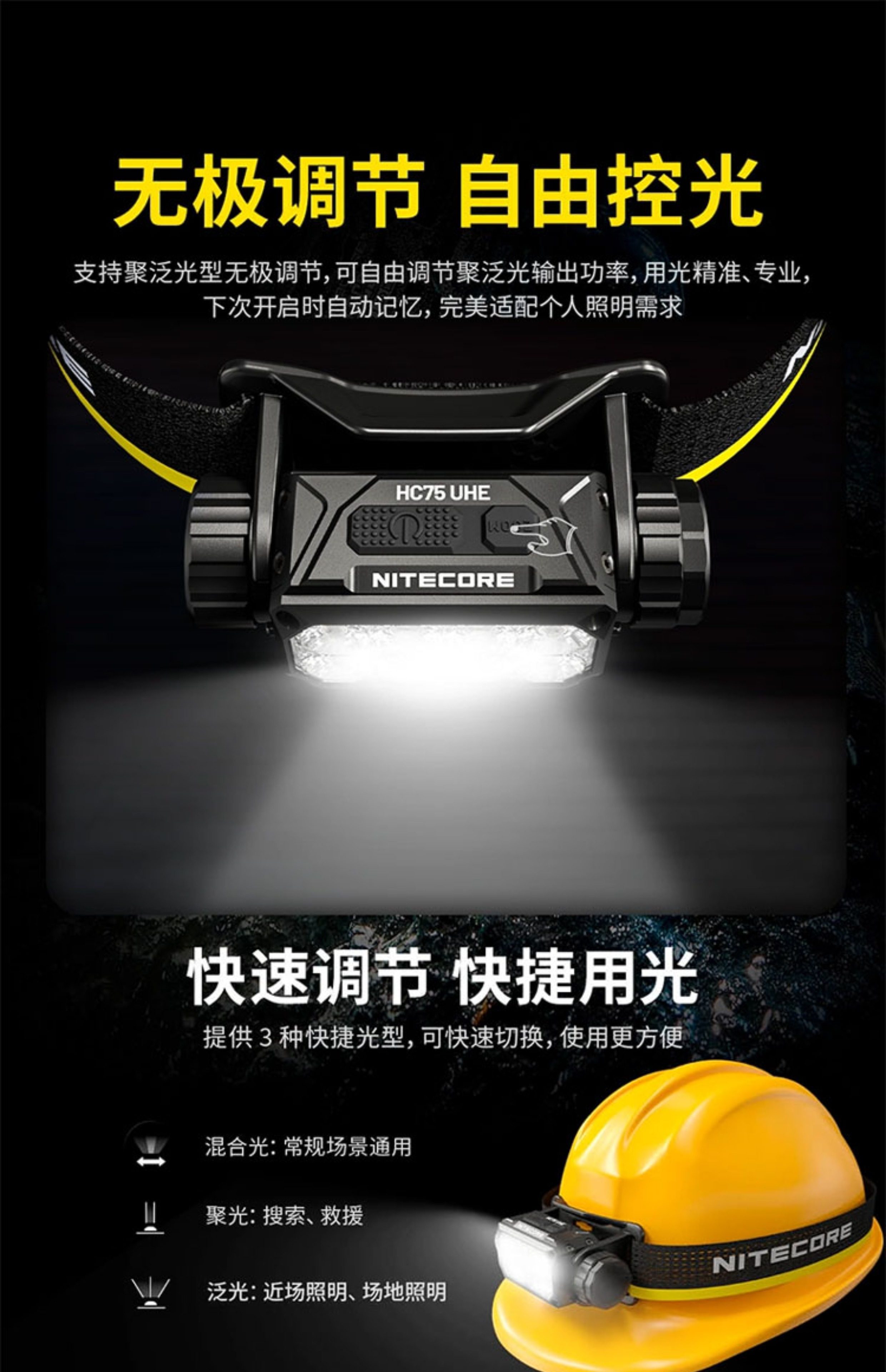 NITECORE HC75UHE 전자 초점 작업 헤드라이트 야외 등산 강한 빛 긴 배터리 수명