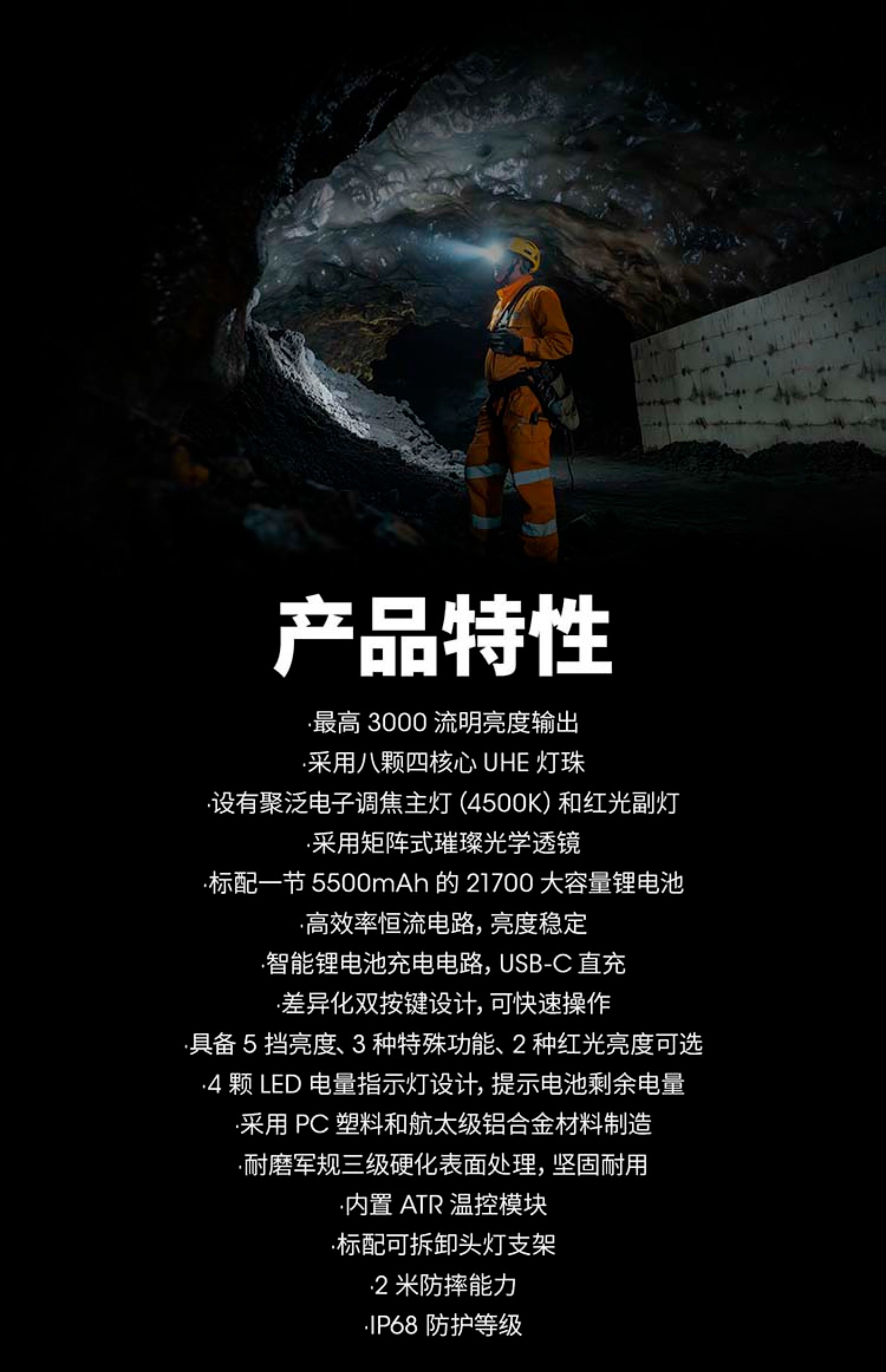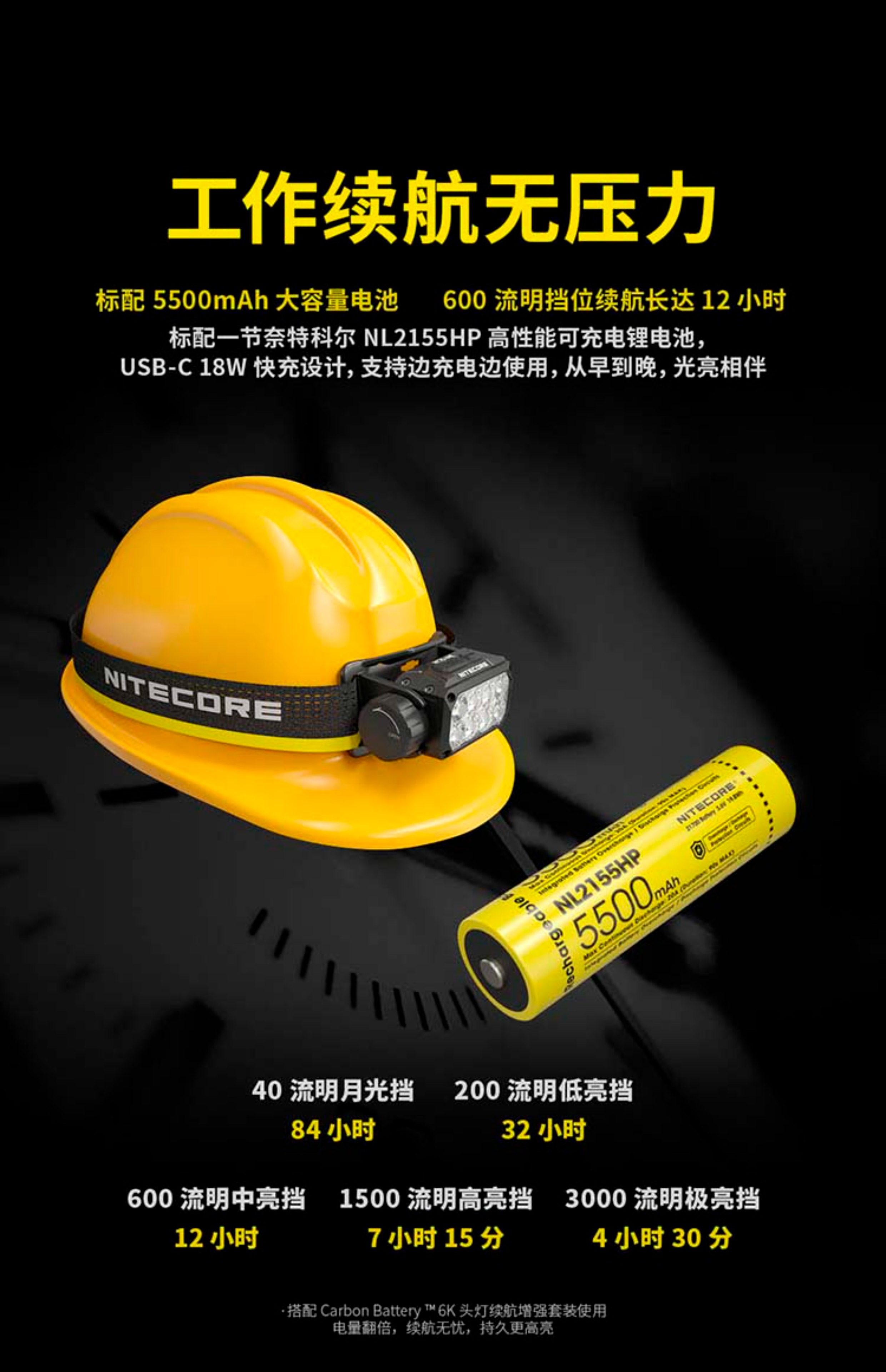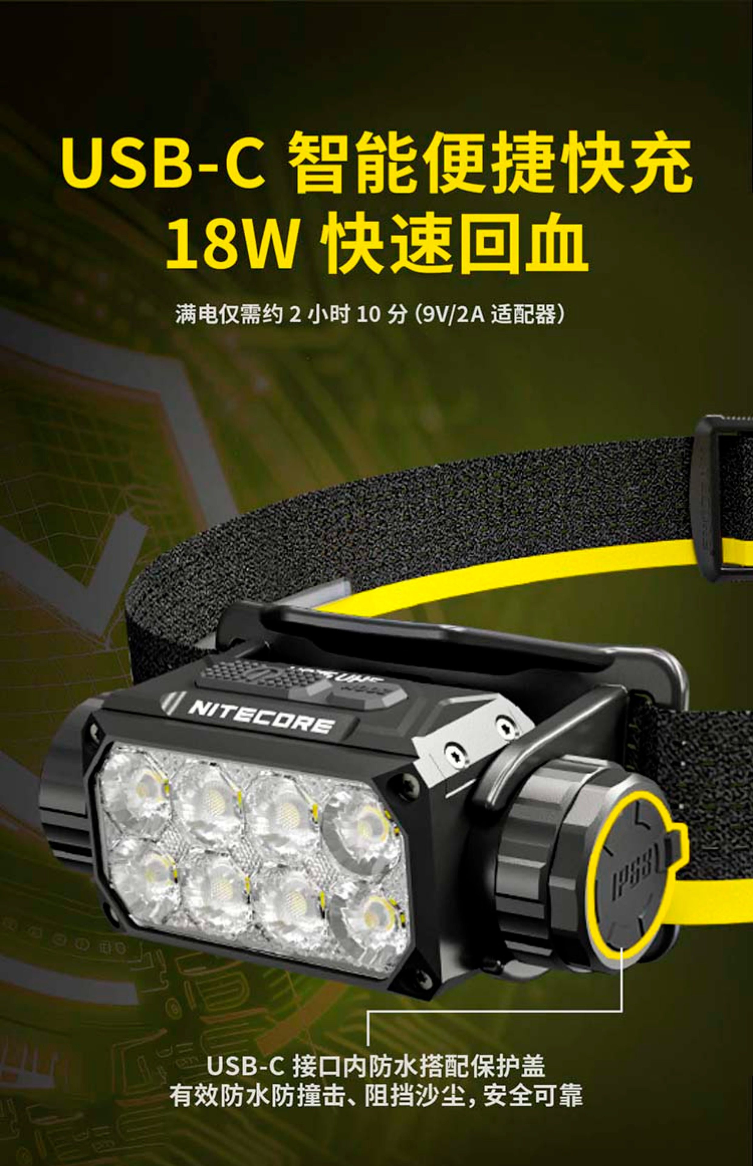 NITECORE HC75UHE 전자 초점 작업 헤드라이트 야외 등산 강한 빛 긴 배터리 수명