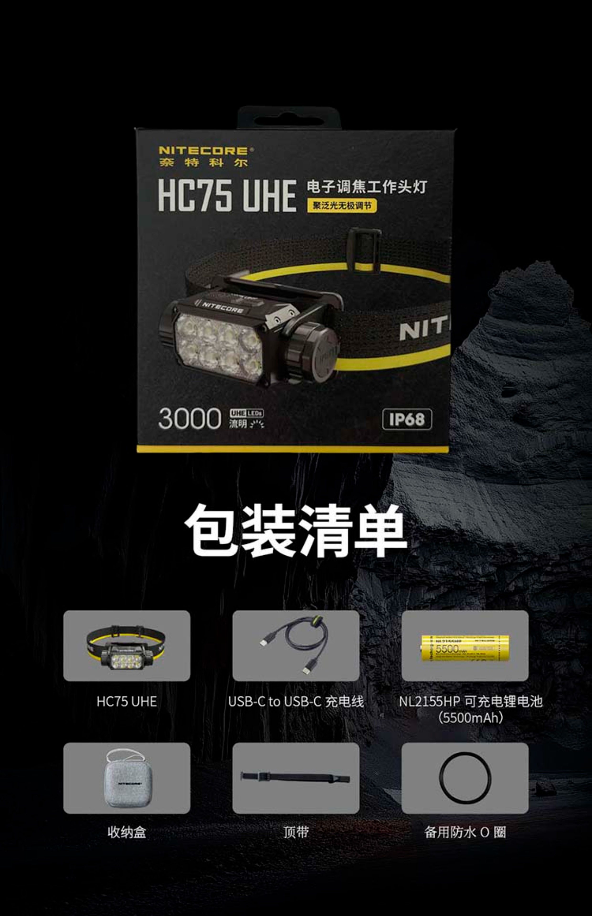 NITECORE HC75UHE 전자 초점 작업 헤드라이트 야외 등산 강한 빛 긴 배터리 수명스토어 가기