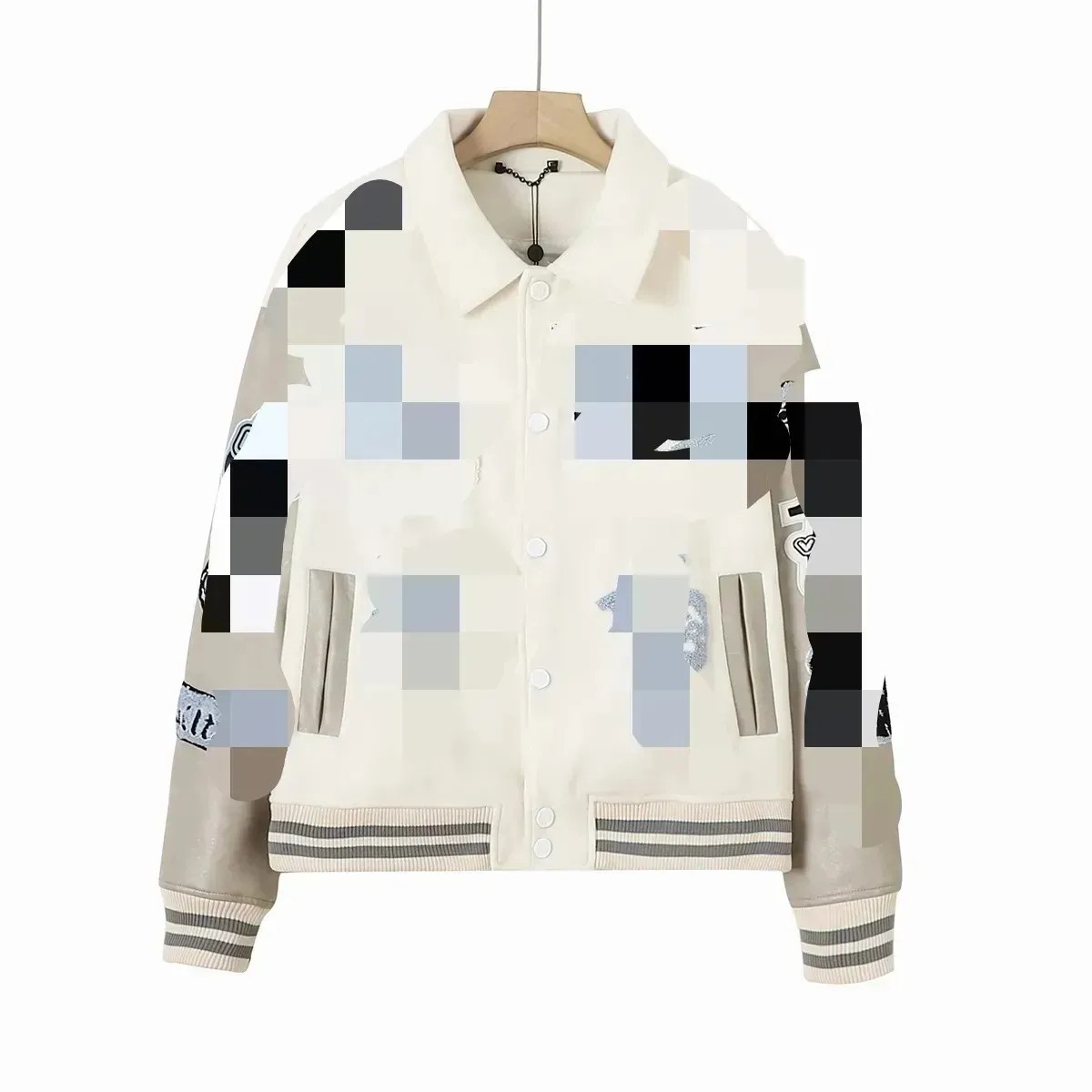 24 유럽과 미국 스타일의 남성과 여성을 위한 야구 유니폼, 문자 비즈 스티치 체커보드 가죽 소매 야구 재킷, 패셔너블한 재킷스토어 가기