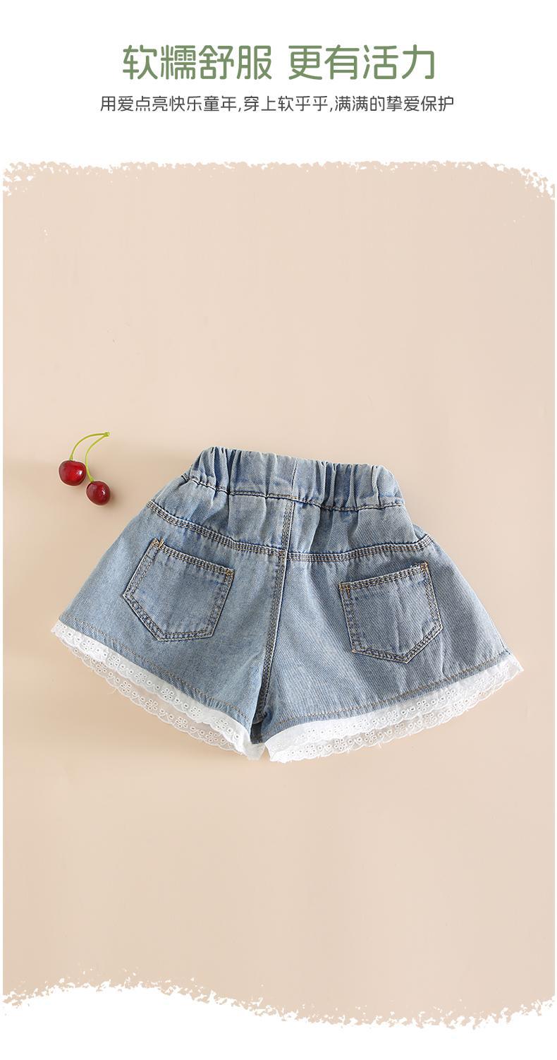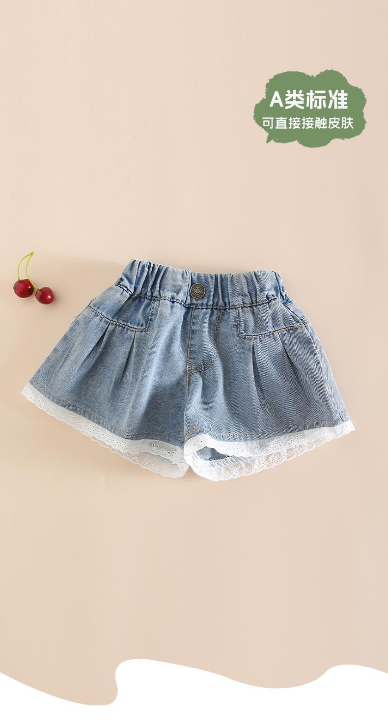 여름 여행을위한 새로운 스타일의 여자 유아 25 귀여운 아기 통기성 피부 친화적 인 부드럽고 편안한 레이스 청바지 반바지스토어 가기