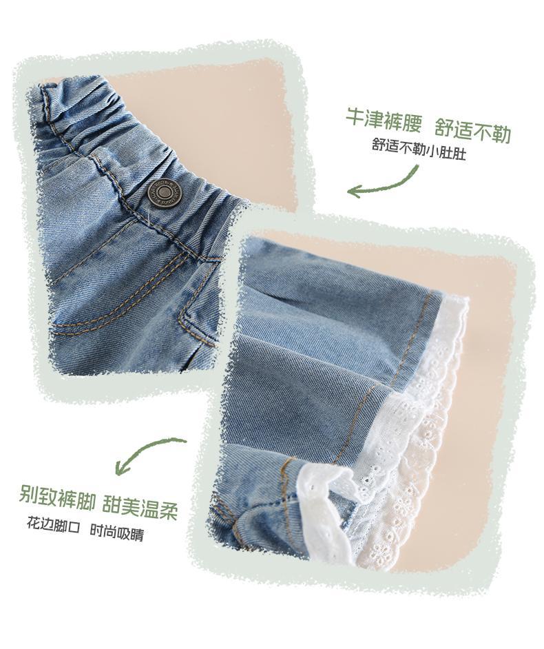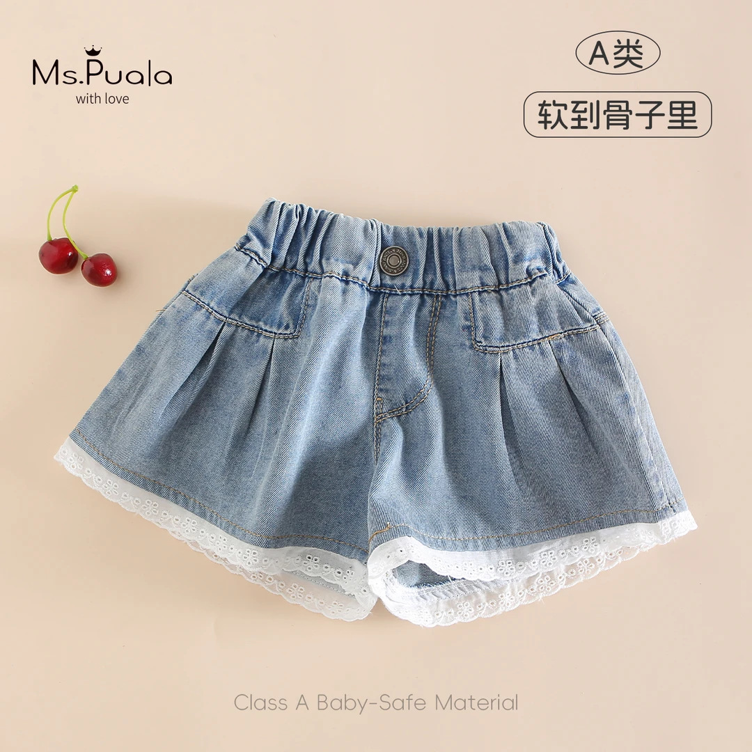 여름 여행을위한 새로운 스타일의 여자 유아 25 귀여운 아기 통기성 피부 친화적 인 부드럽고 편안한 레이스 청바지 반바지