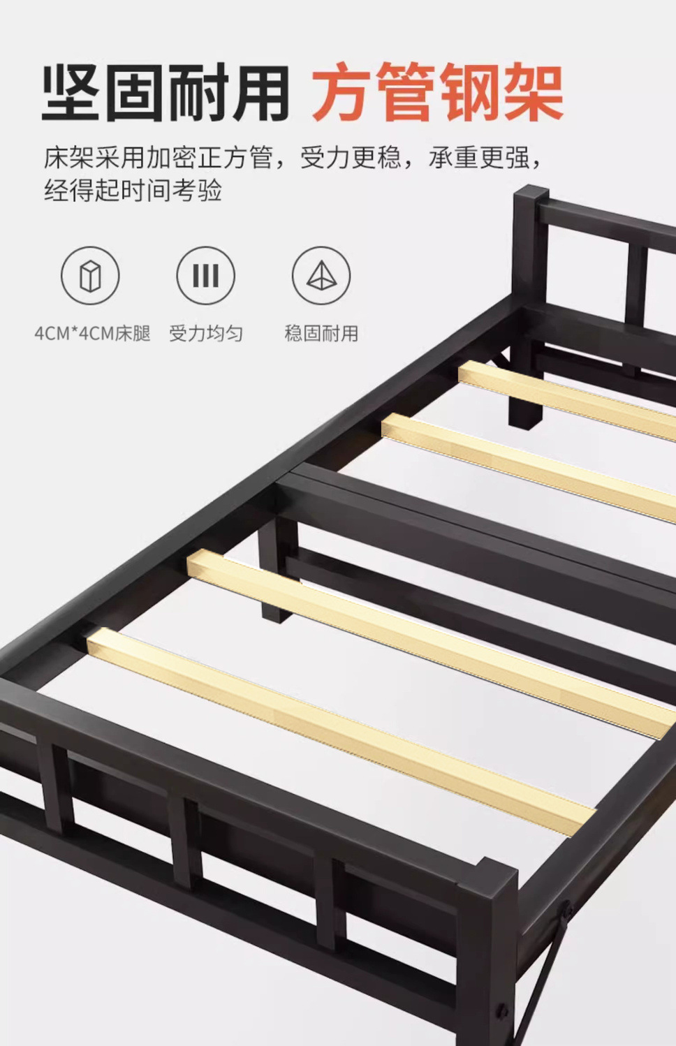 접이식 침대 싱글 침대 단단한 나무 간단한 침대 가정용 점심 시간 성인 낮잠 강화 철 프레임 침대 더블 1.2m 유아용 침대