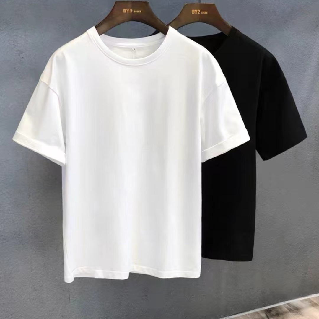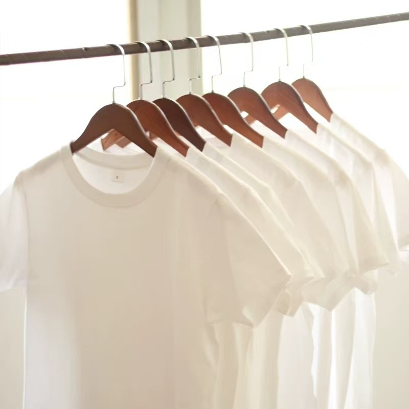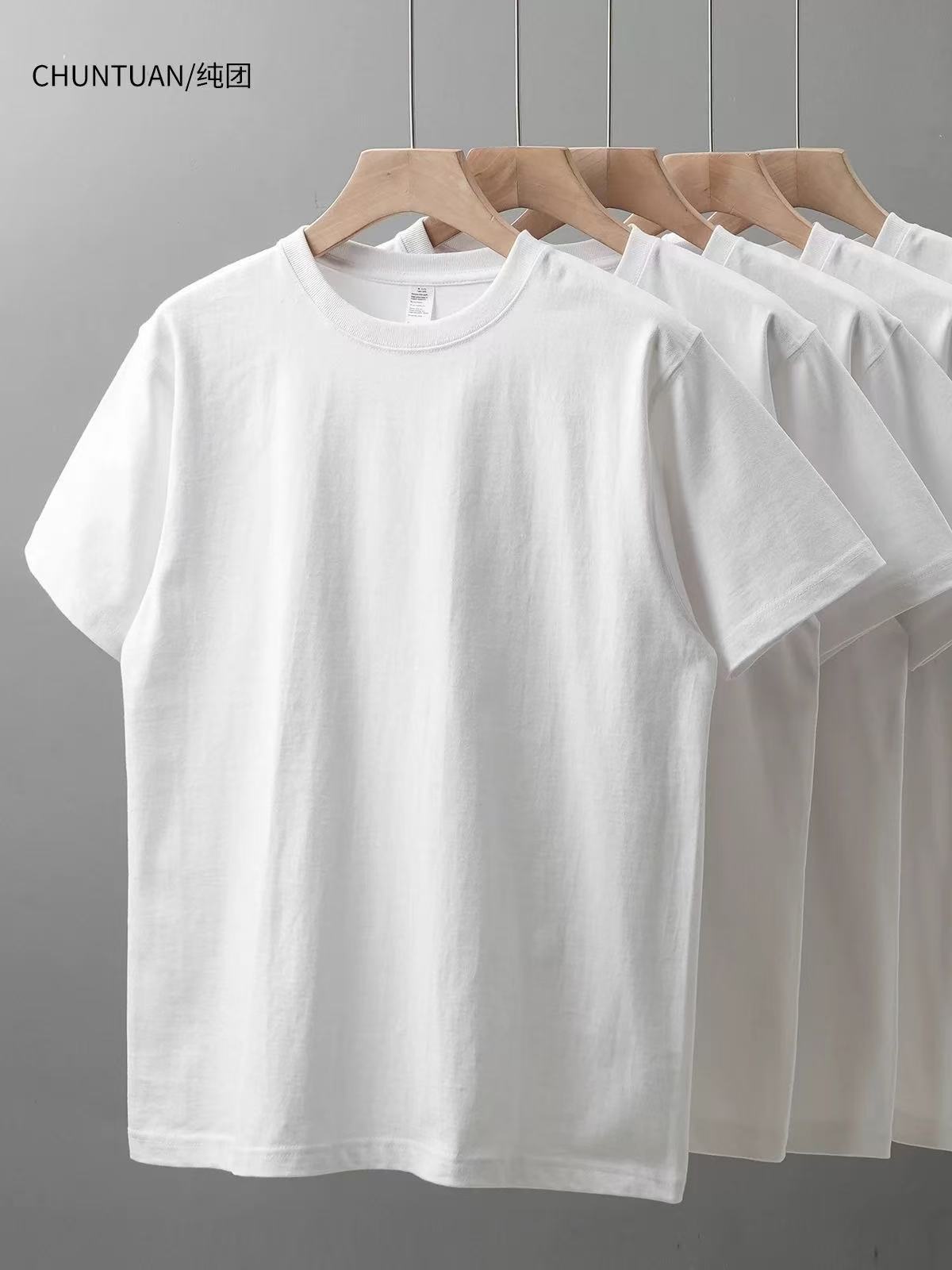 하이 퀄리티 신장면 순백색 불투과성 중소매 퓨어 화이트 티셔츠 남성용 느슨한 크루 넥베이스 셔츠스토어 가기
