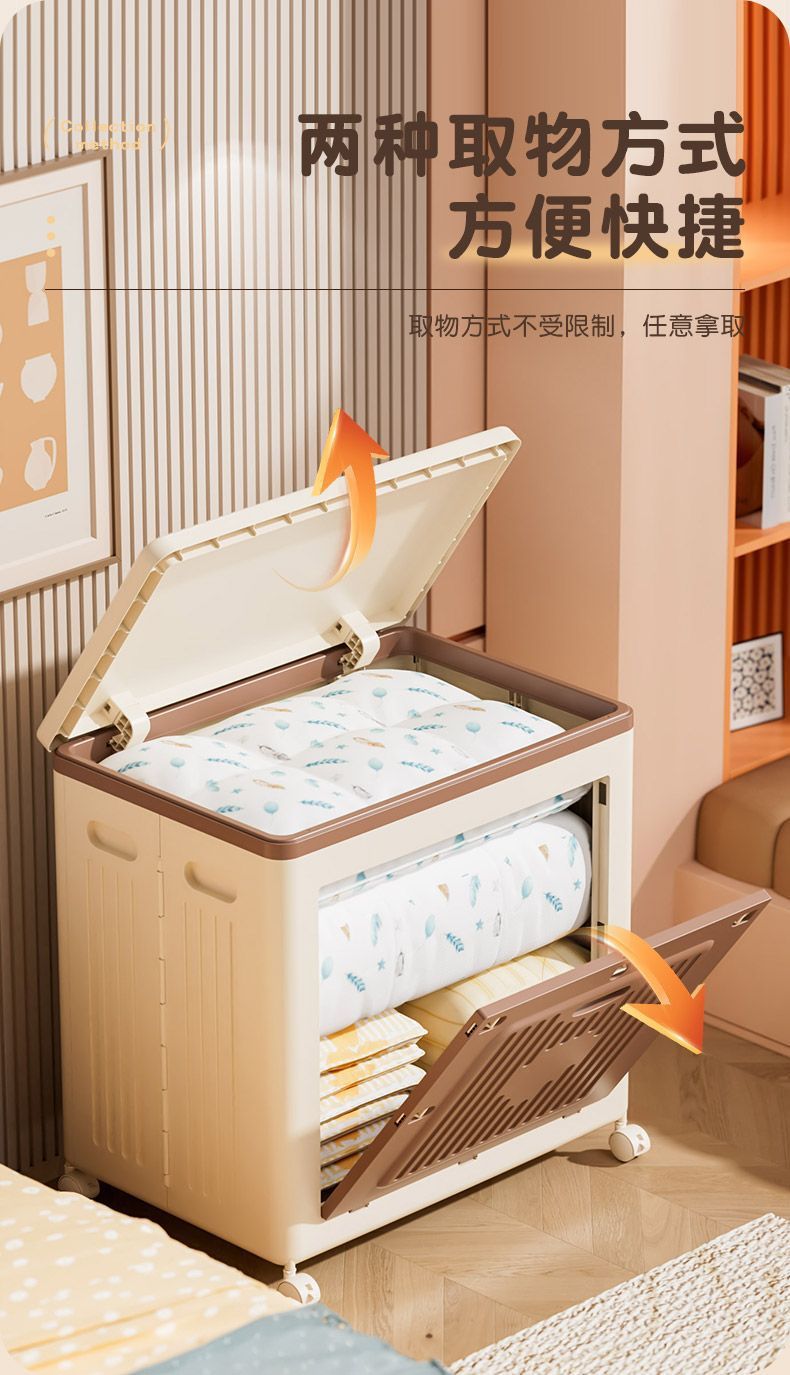 옷 수납함, 플립형 침실 의류 및 이불 정리함, 접이식 수납장, 수납 캐비닛, 회전 바퀴스토어 가기