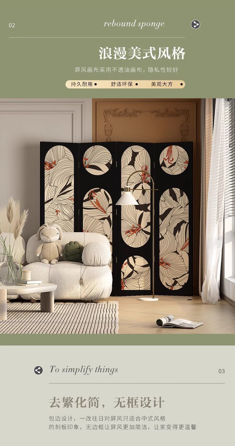 프랑스 중세 꽃 스크린 파티션 접이식 이동식 침실 룸 차단 소파 배경 벽 홈 거실