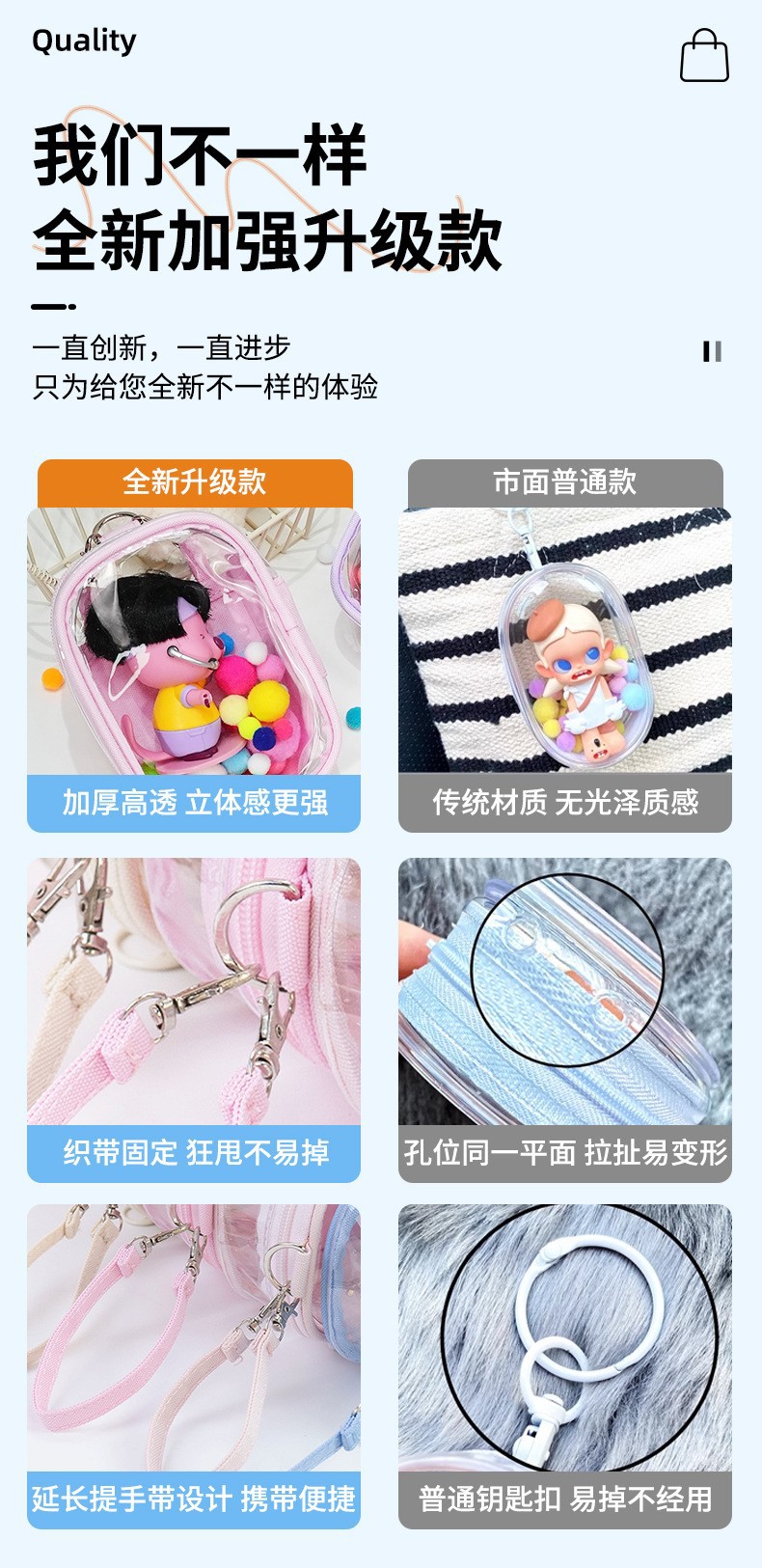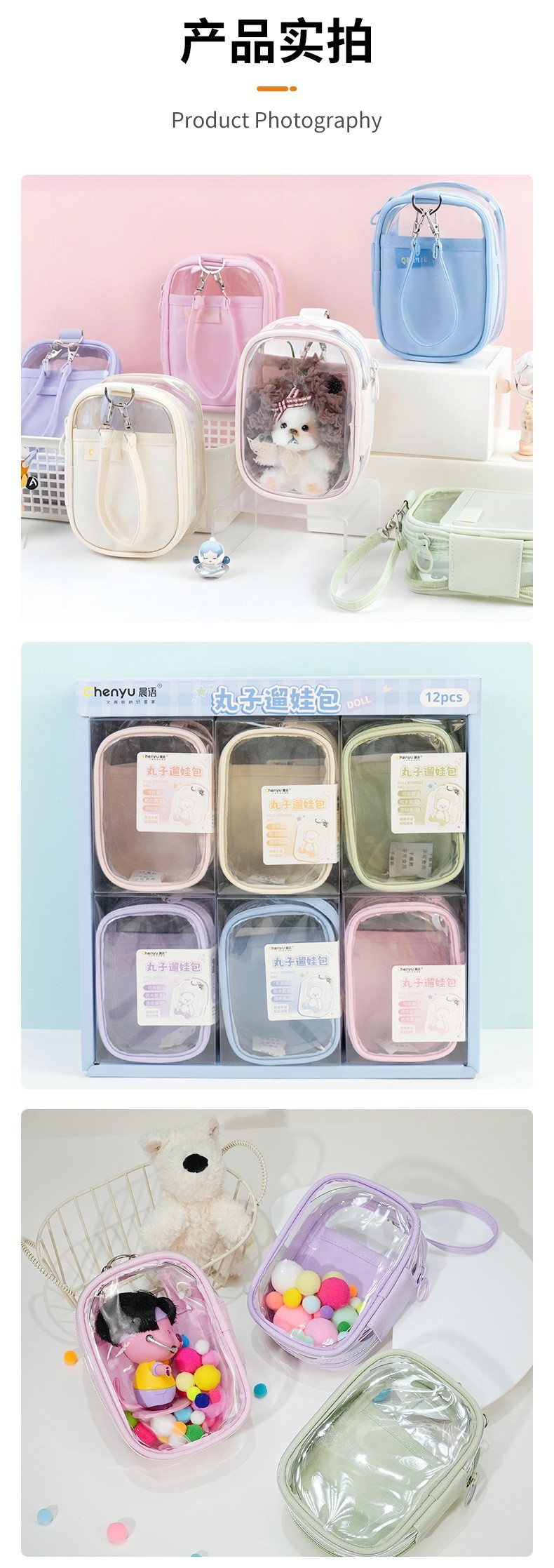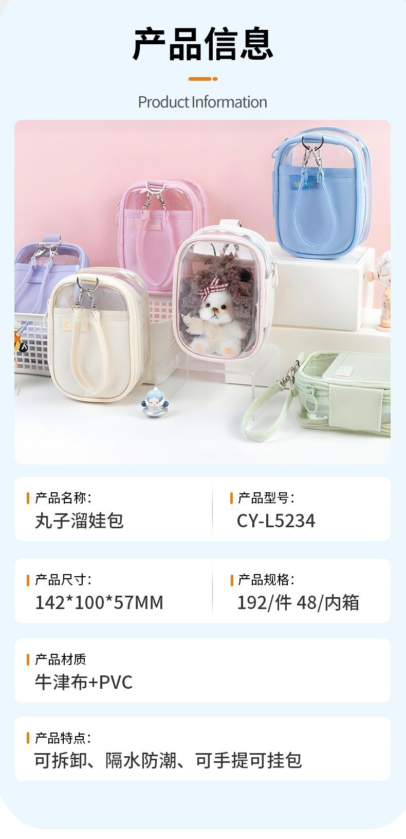 10cm 버블마트 투명 PVC 인형 가방, 핸드백, 펜던트, 아기 가방, 푸백, 라부부, 유아용 가방스토어 가기