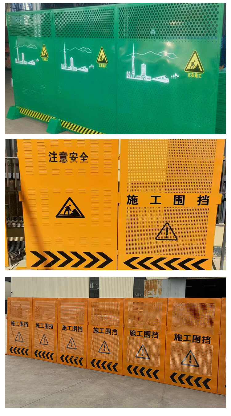 엔지니어링 공학 안전 울타리 이동식 임시 가드 레일 노란색 천공된 도시 건설 현장 경고 울타리