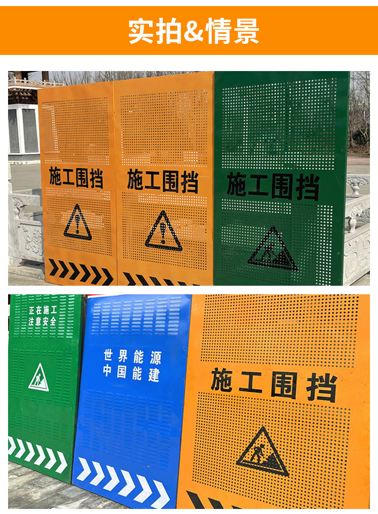 엔지니어링 공학 안전 울타리 이동식 임시 가드 레일 노란색 천공된 도시 건설 현장 경고 울타리스토어 가기