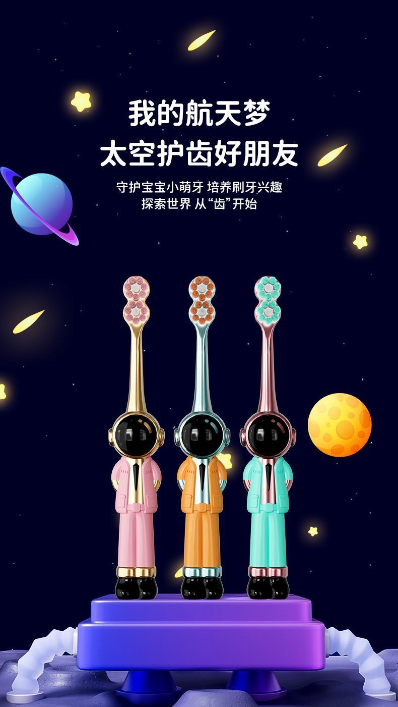 3-12 세 귀여운 우주 비행사 어린이 부드러운 강모 아기 칫솔 어린이 같은 외모 귀여운 아기 부드러운 강모 칫솔 도매