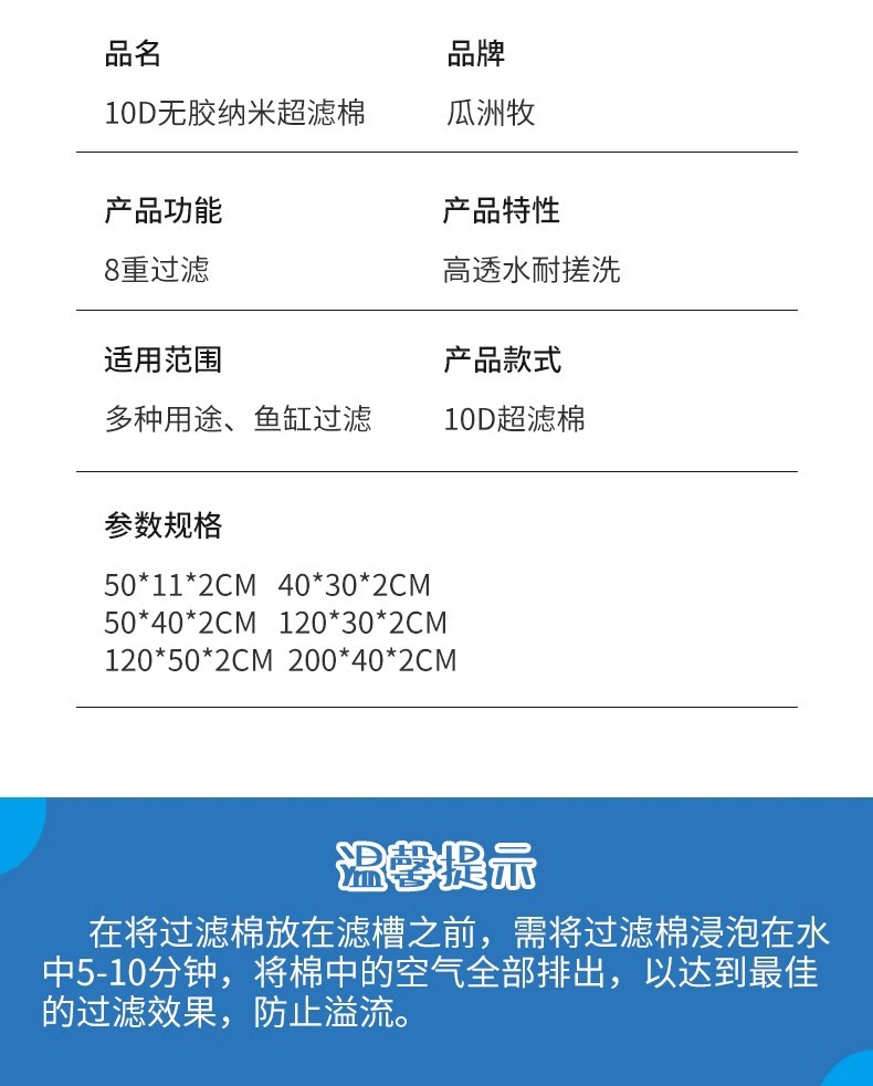 수조 필터면 특수 필터 고투수성 두꺼운 생화학 면 수족관 필터 재료 매직 카펫은 세탁할 수 없습니다