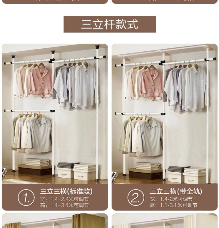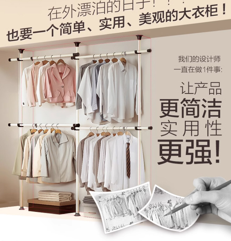 천장부터 바닥까지 다기능 옷걸이 바닥 DIY 간단한 접이식 옷걸이 침실 옷걸이 간단한 현대 공장