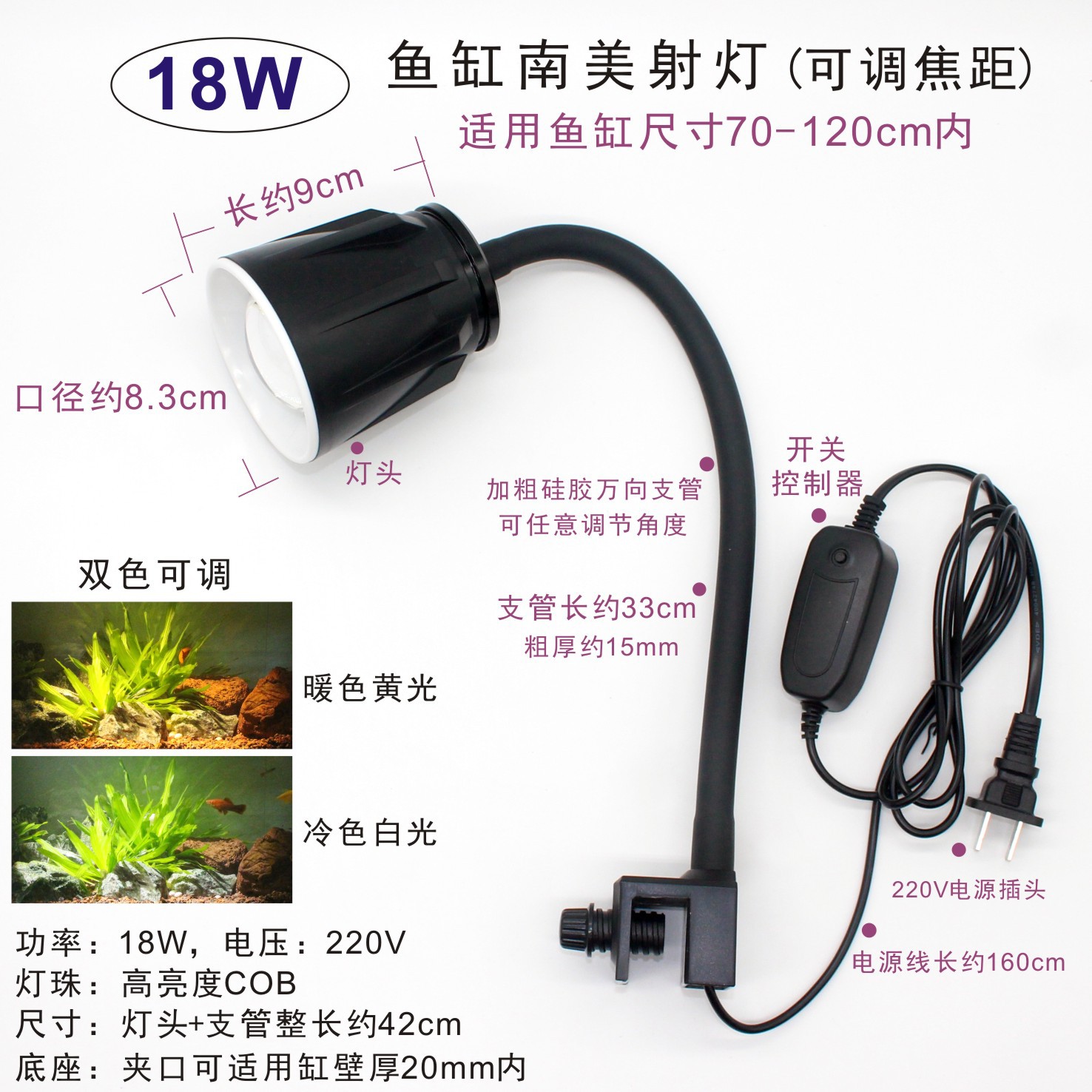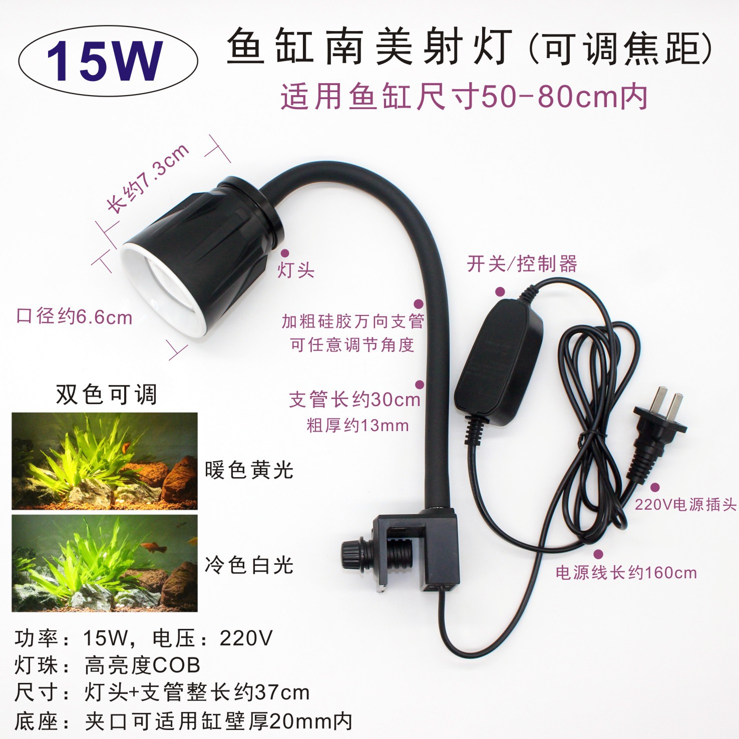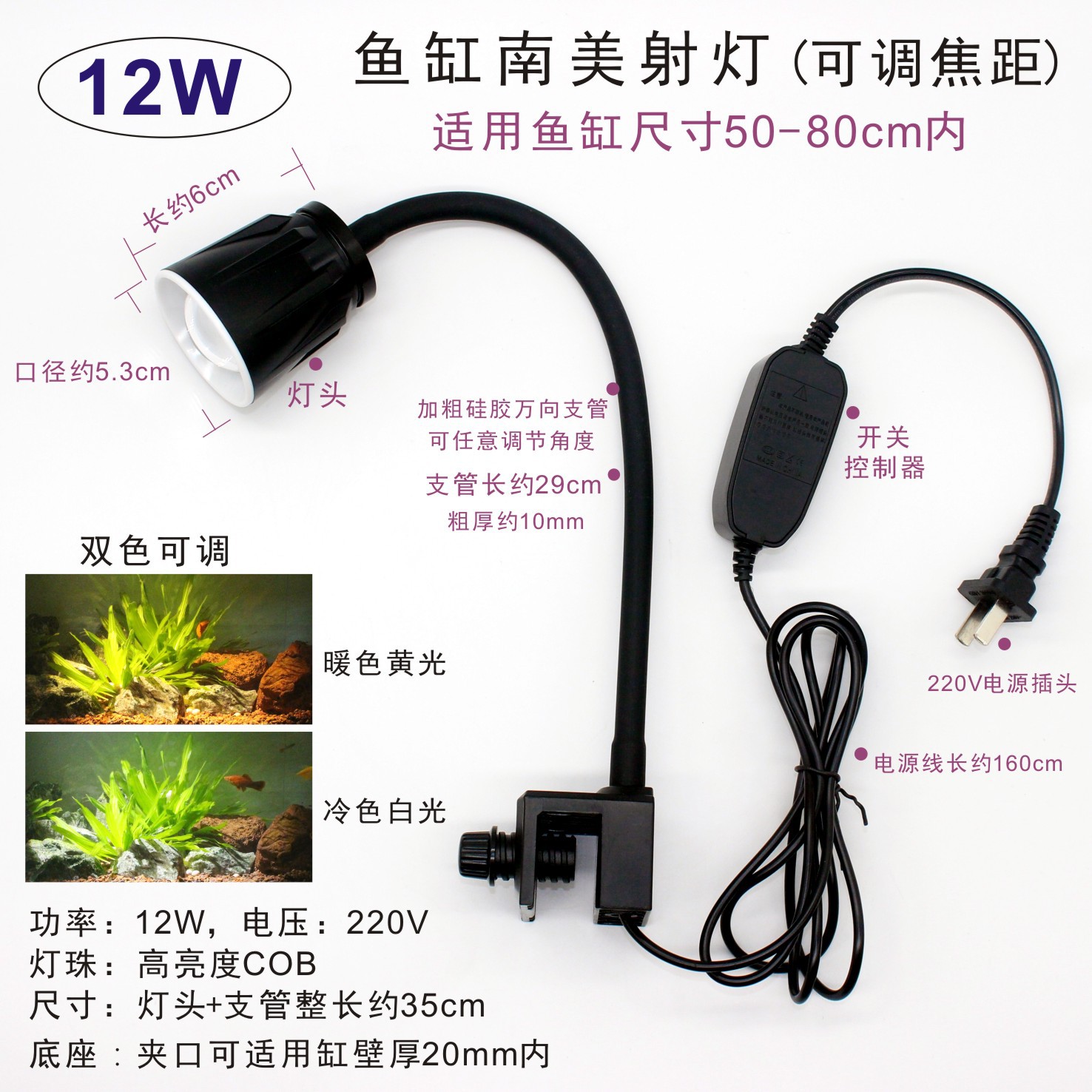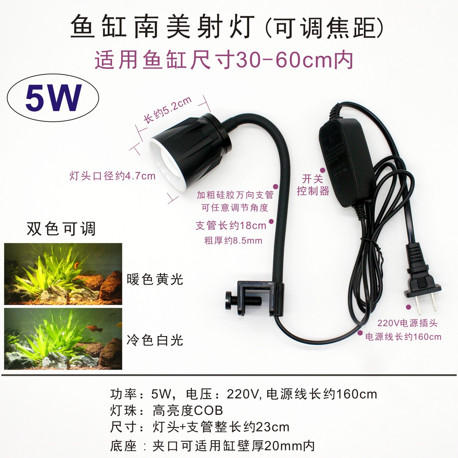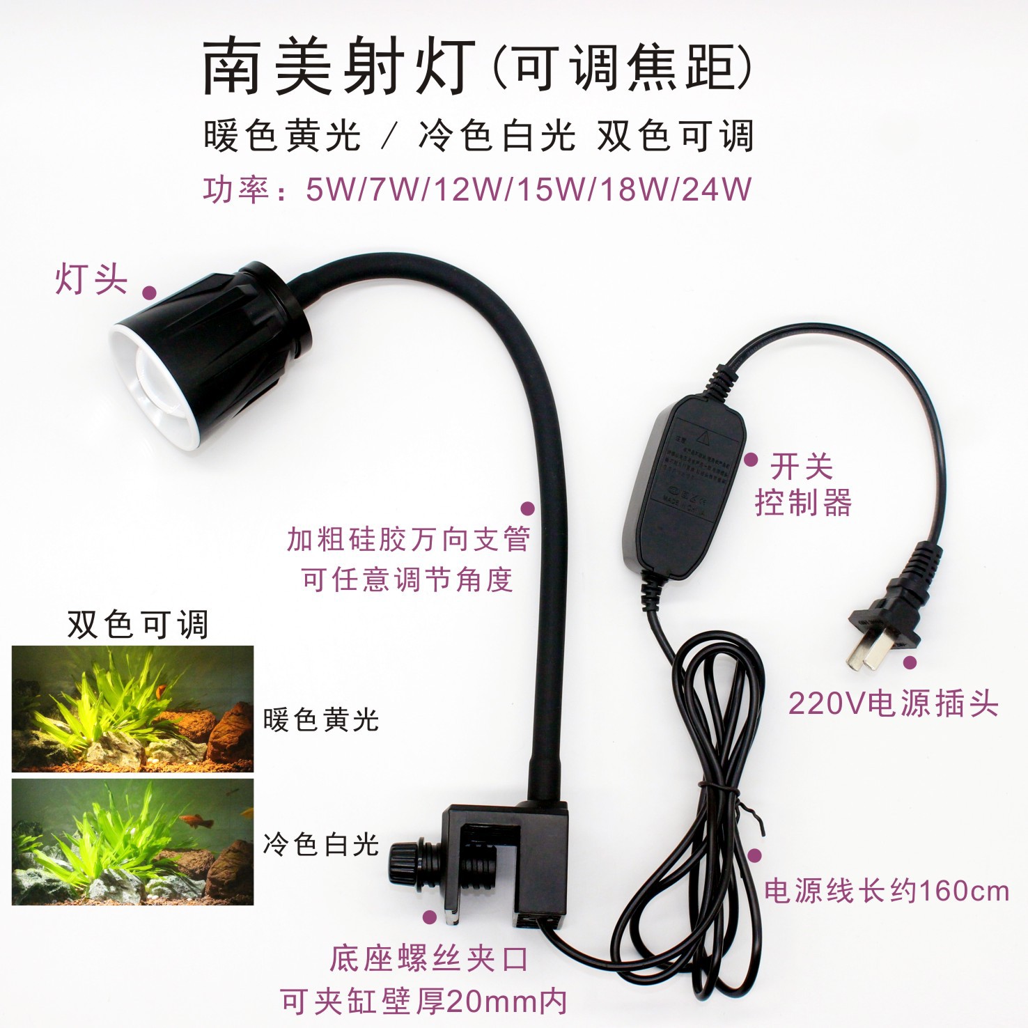 남미 수조 조명, LED 수조 클립 조명, 초점 조명, 삼호 계곡 네이티브 탱크, 수생 식물 탱크, 해양 탱크 보조 조명