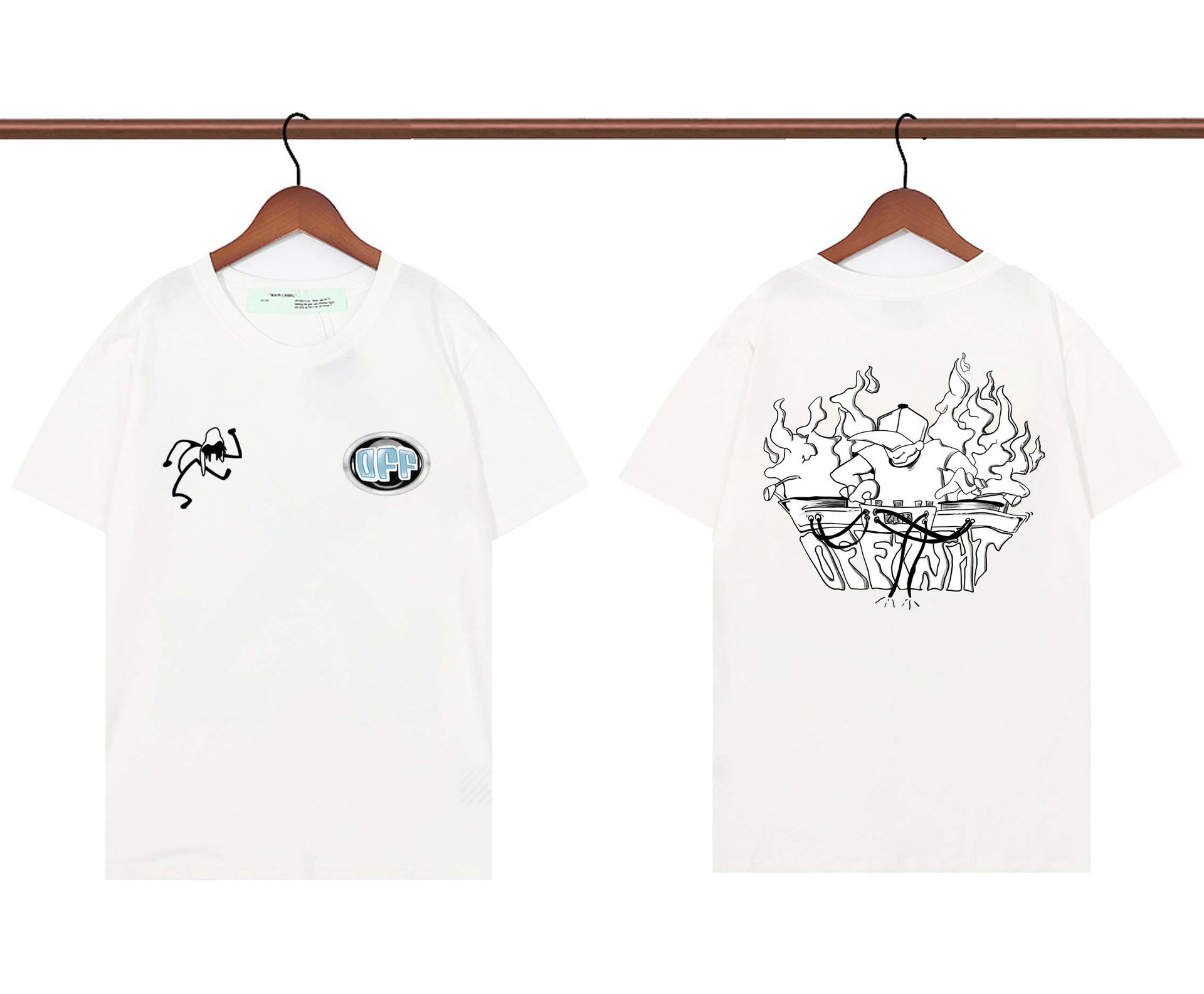 230g纯棉面料印花T恤,只有off领标,没有吊牌,没有重量问题不支持退换货