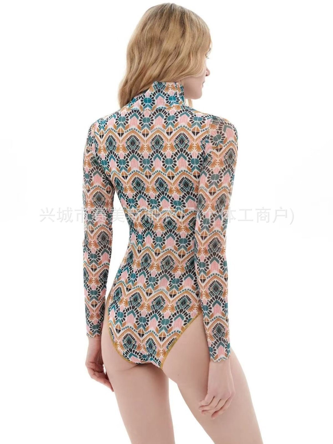 러시아의 새로운 원피스 수영복, 여성스러운 유럽과 미국 스포츠 긴팔 프린트 크로스보더 오존 서핑 슈트 수영복