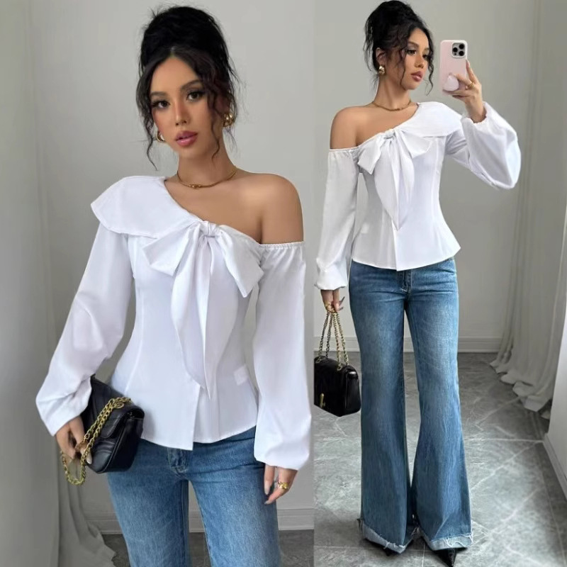 달콤한 젊어보이는 주름 장식 러플 셔츠 여성용 봄 신상 디자인 레이스업 리본 긴팔 허리라인 강조 우아함스토어 가기