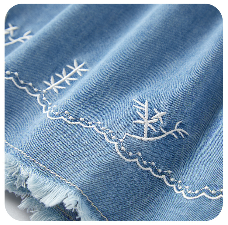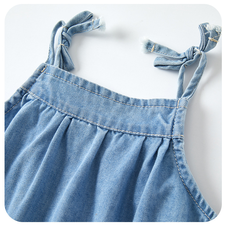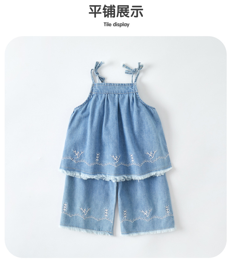 여자 아기 나비 넥타이 스커트 정장 2025 여름 새 스타일 아기 자수 데님 탑과 바지 투피스 세트스토어 가기