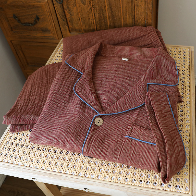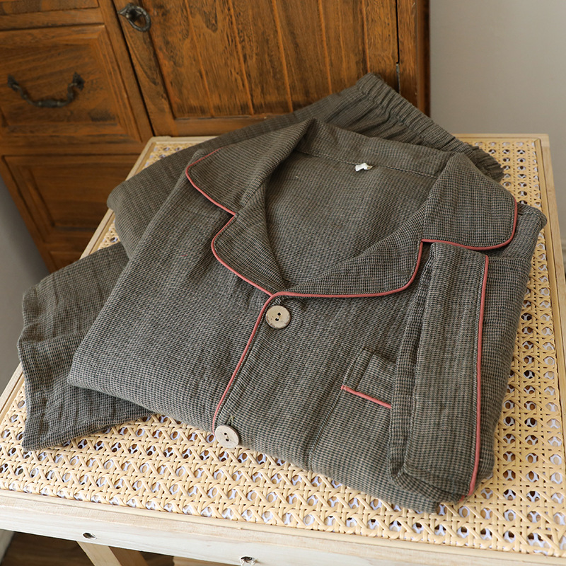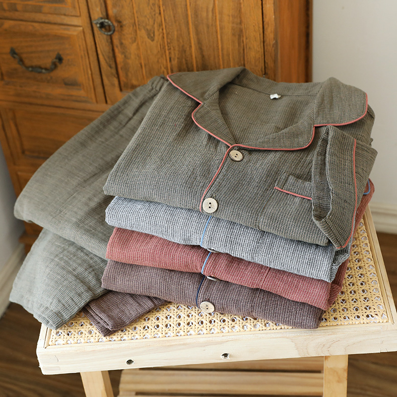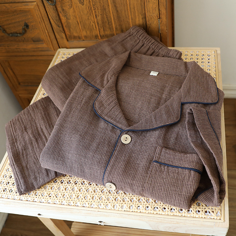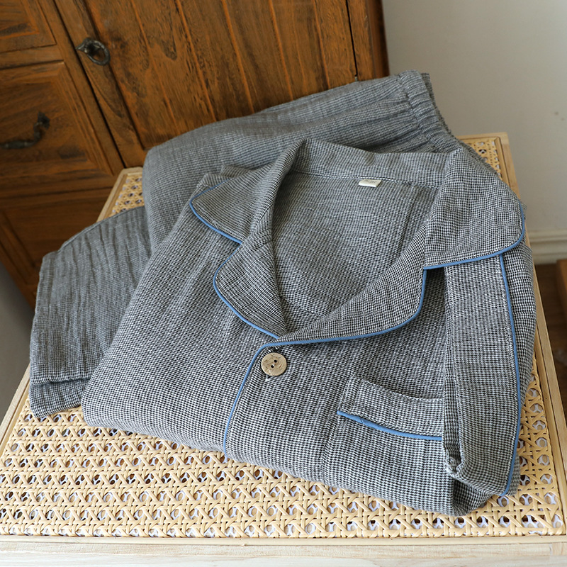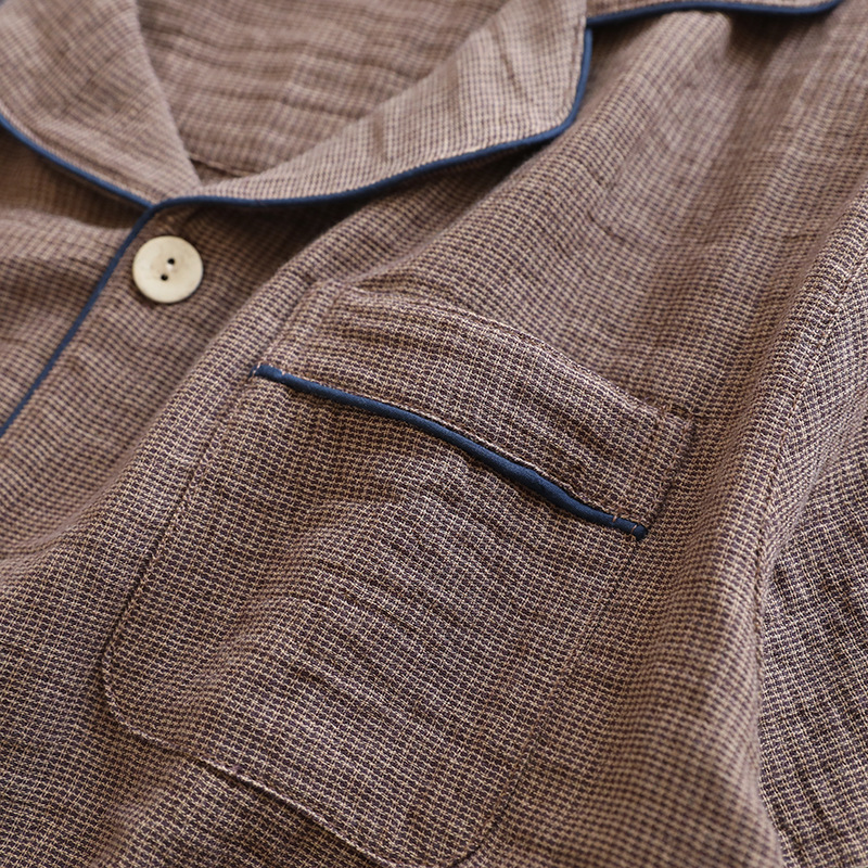 반팔 바지 남성면 파자마 여름 새로운 더블 레이어 원사 코튼 반팔 바지 세트 피부 친화적 인 통기성