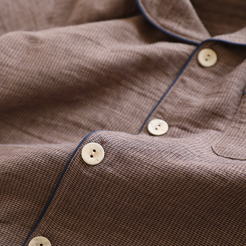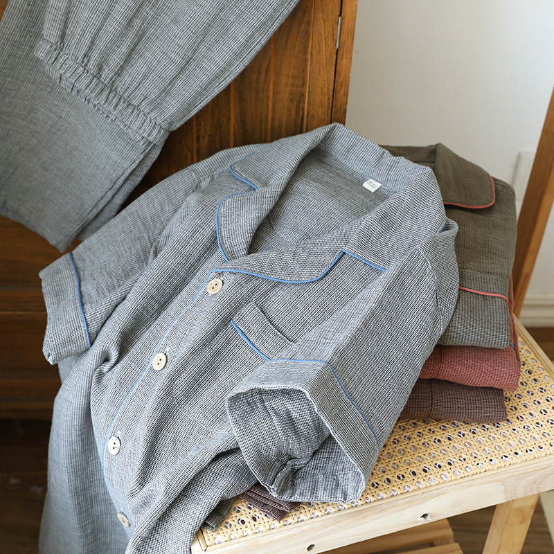 반팔 바지 남성면 파자마 여름 새로운 더블 레이어 원사 코튼 반팔 바지 세트 피부 친화적 인 통기성스토어 가기