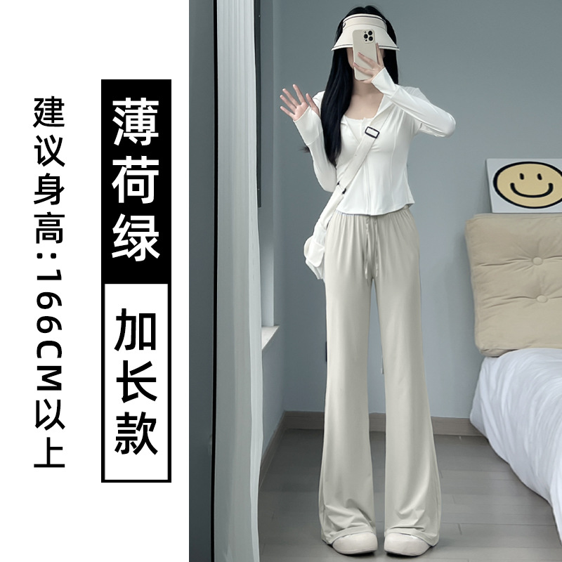 회색 아이스 실크 선 스크린 플레어 팬츠 여성 여름 얇은 2025 새로운 높은 허리 슬림 핏 슬리밍 편안한 센스 마이크로 슬램 바지스토어 가기