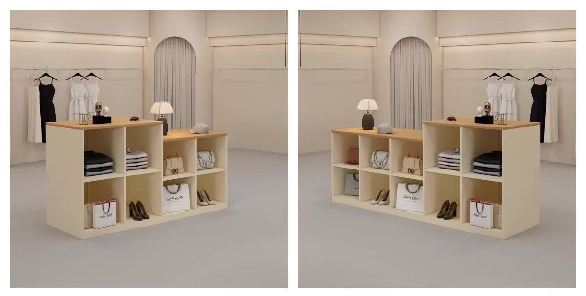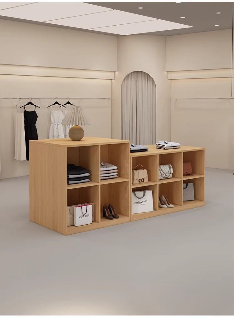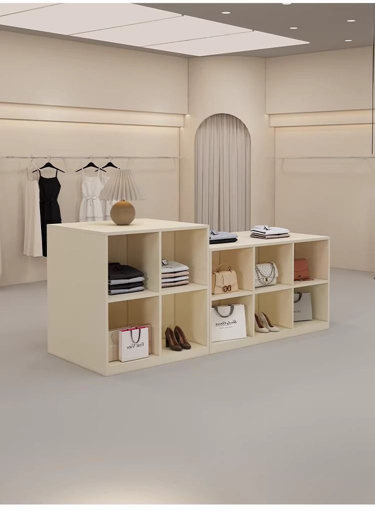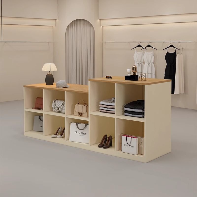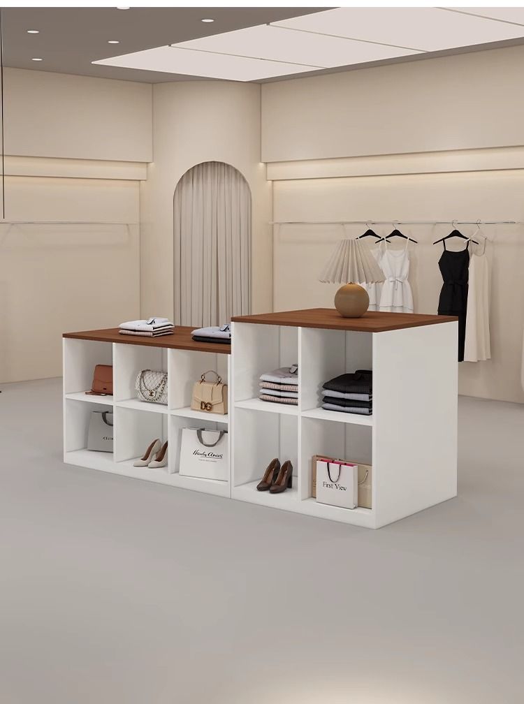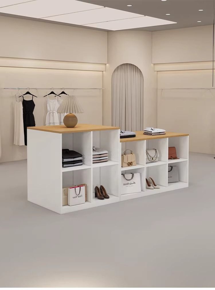 심플하고 모던한 아일랜드 디스플레이 테이블, 여성복 매장 카운터, 중앙에 디스플레이 테이블, 신발 및 가방 디스플레이 캐비닛