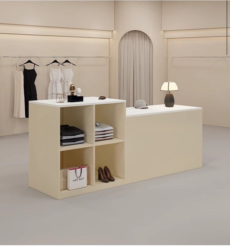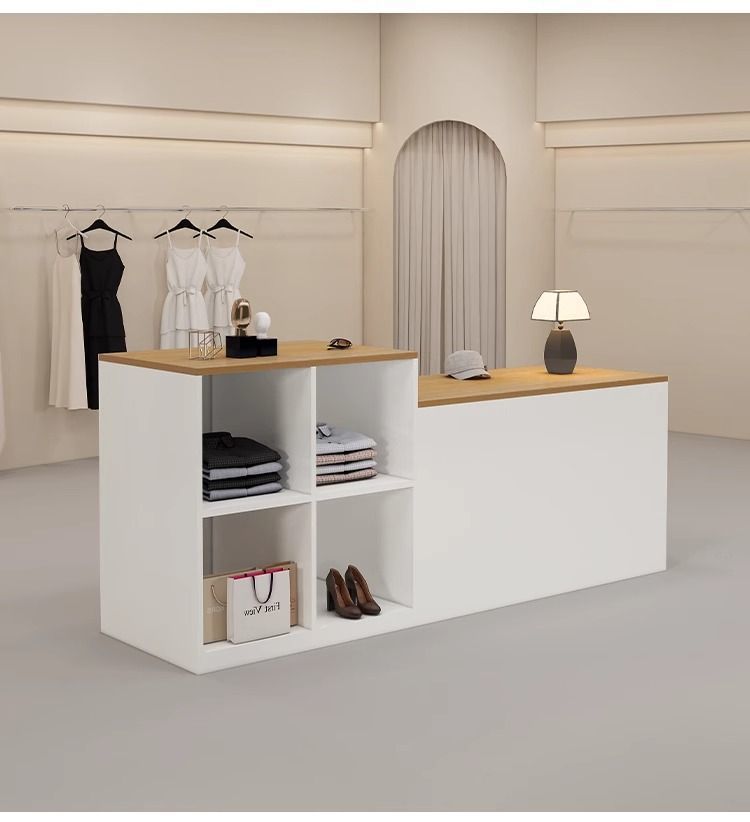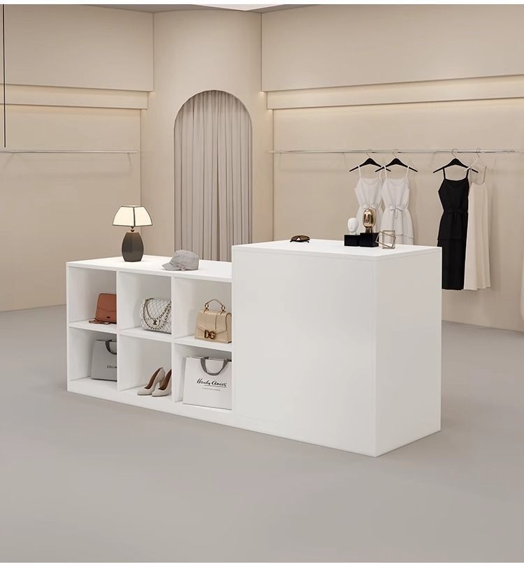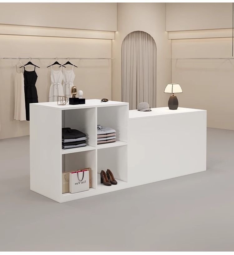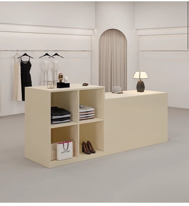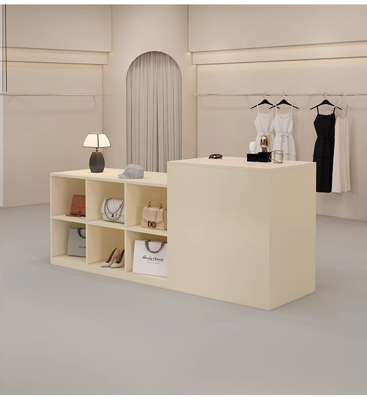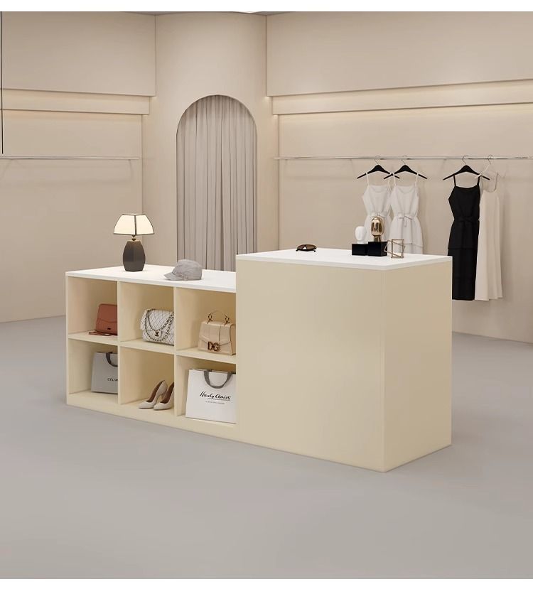 심플하고 모던한 아일랜드 디스플레이 테이블, 여성복 매장 카운터, 중앙에 디스플레이 테이블, 신발 및 가방 디스플레이 캐비닛