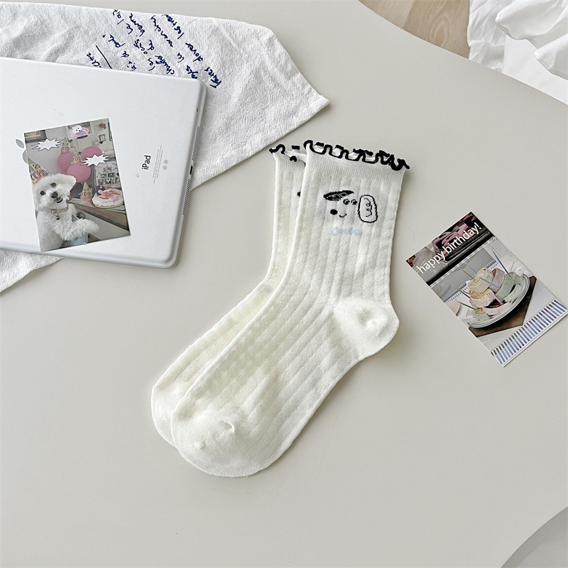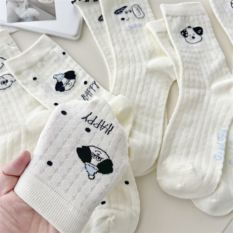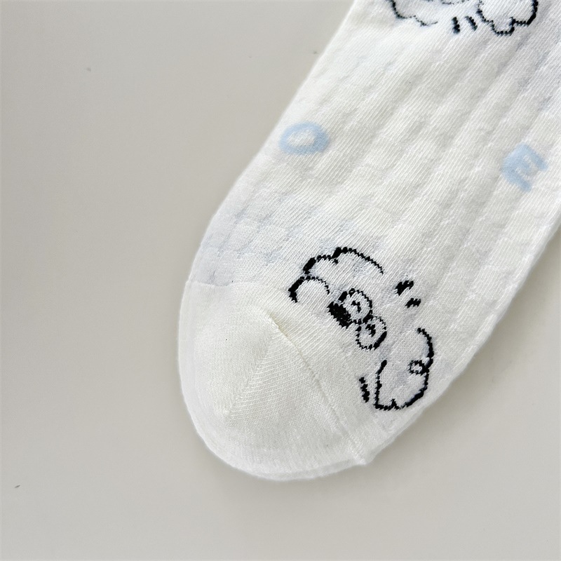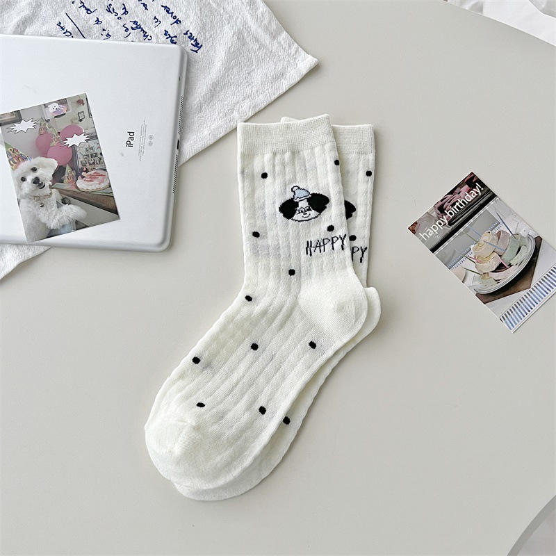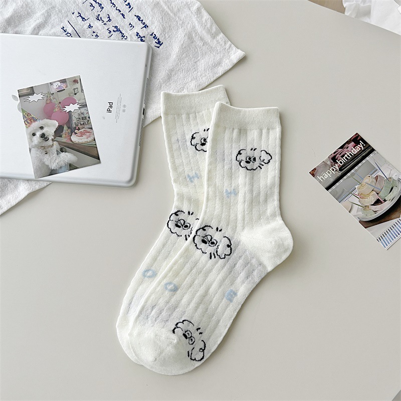 여자 귀여운 양말 여름 얇은 만화 강아지 흰색 중간 튜브 양말 여성 만화 일본식
