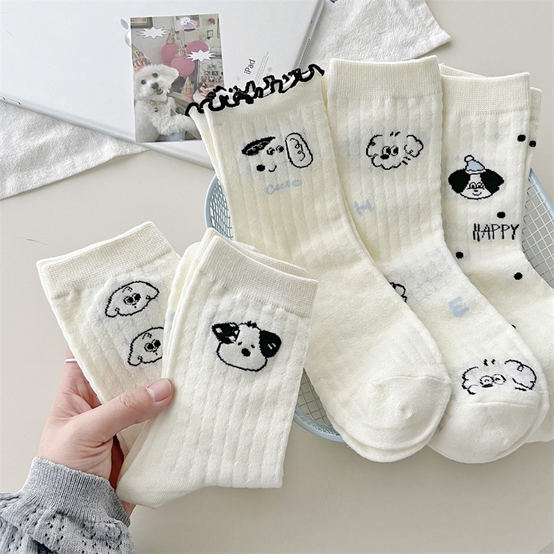 여자 귀여운 양말 여름 얇은 만화 강아지 흰색 중간 튜브 양말 여성 만화 일본식스토어 가기
