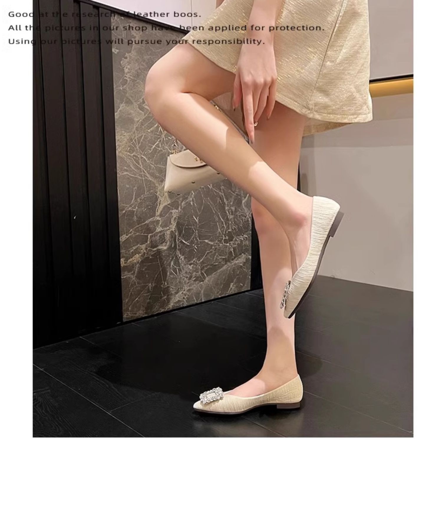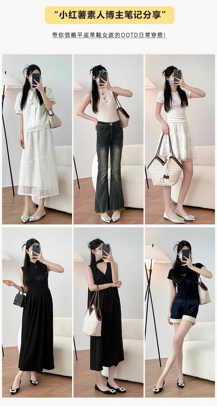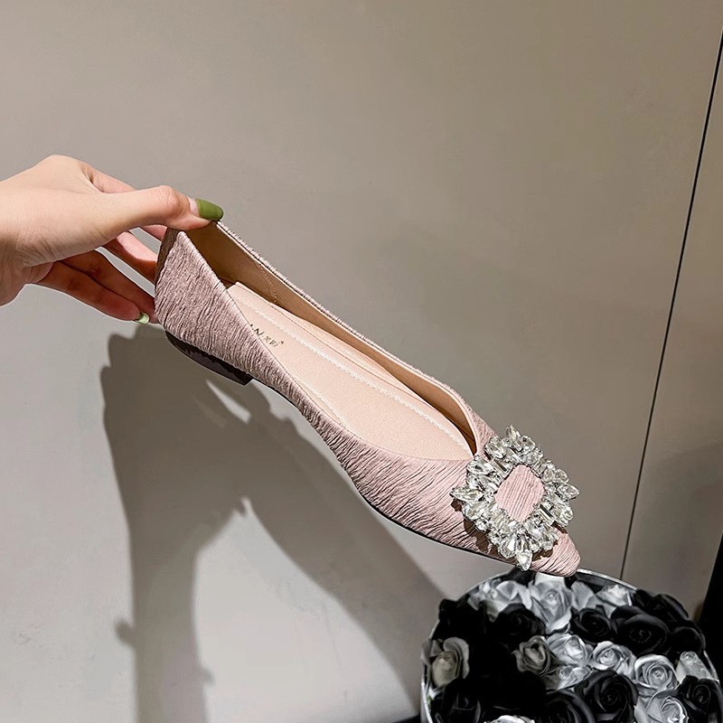정품 가죽 프렌치 뾰족한 발가락 신발 여성의 2025 년 새 봄 가을 신발 라인석 여성의 우아한 플랫 무당 신발스토어 가기
