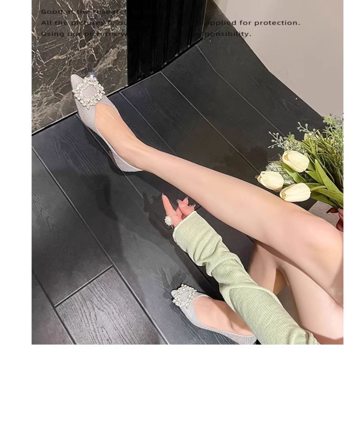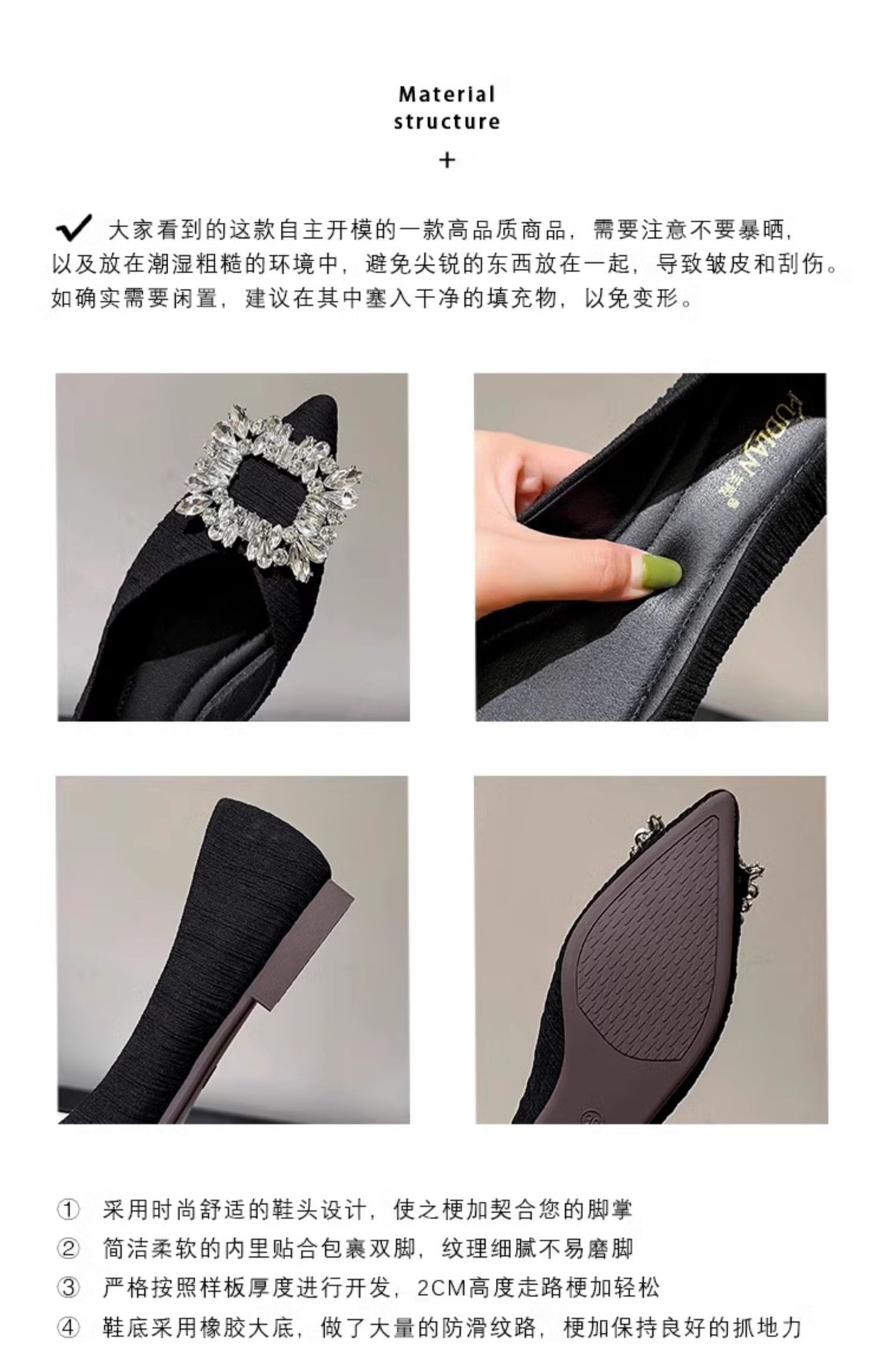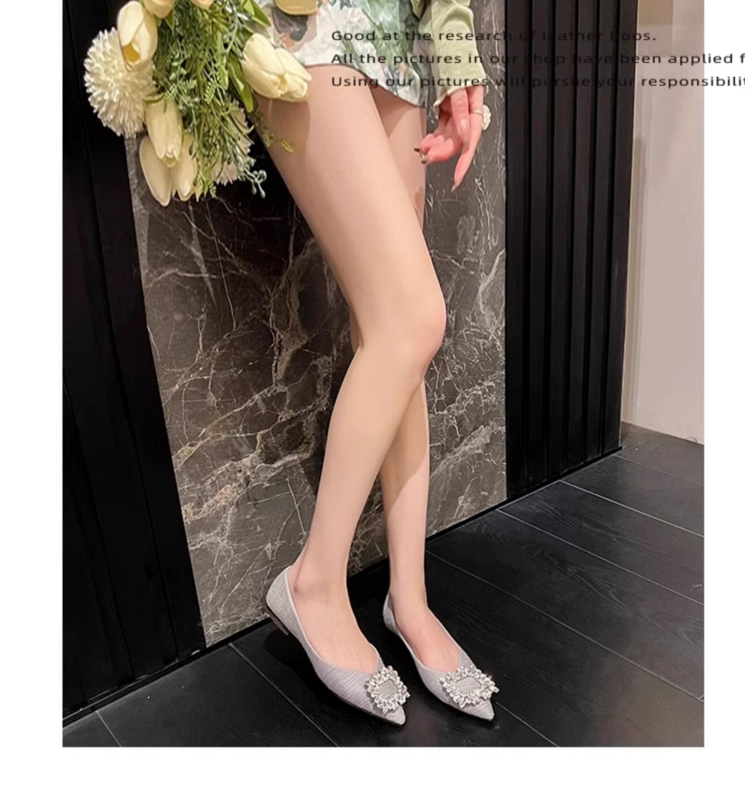 정품 가죽 프렌치 뾰족한 발가락 신발 여성의 2025 년 새 봄 가을 신발 라인석 여성의 우아한 플랫 무당 신발스토어 가기