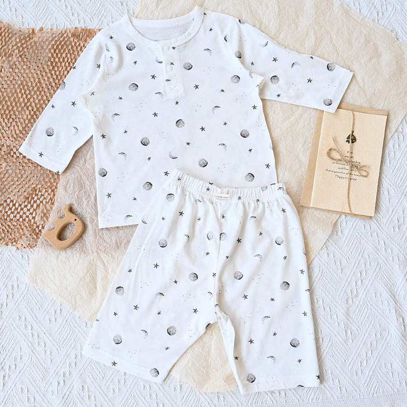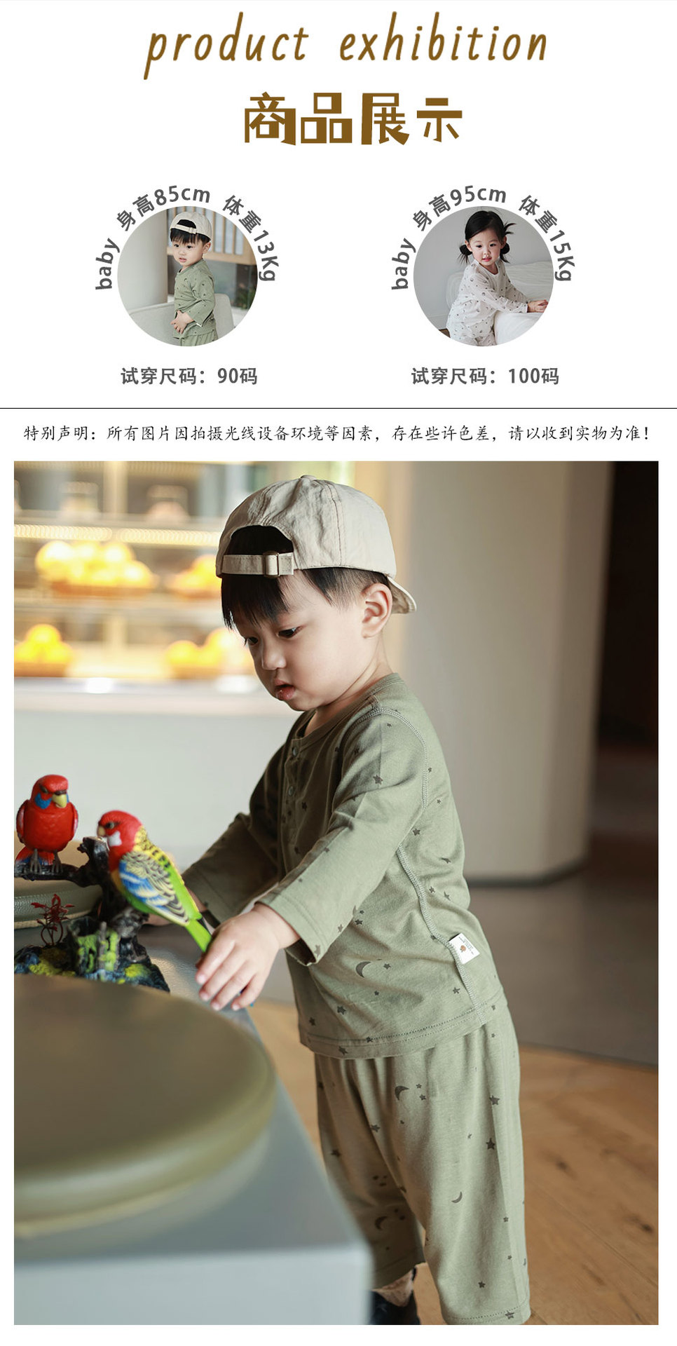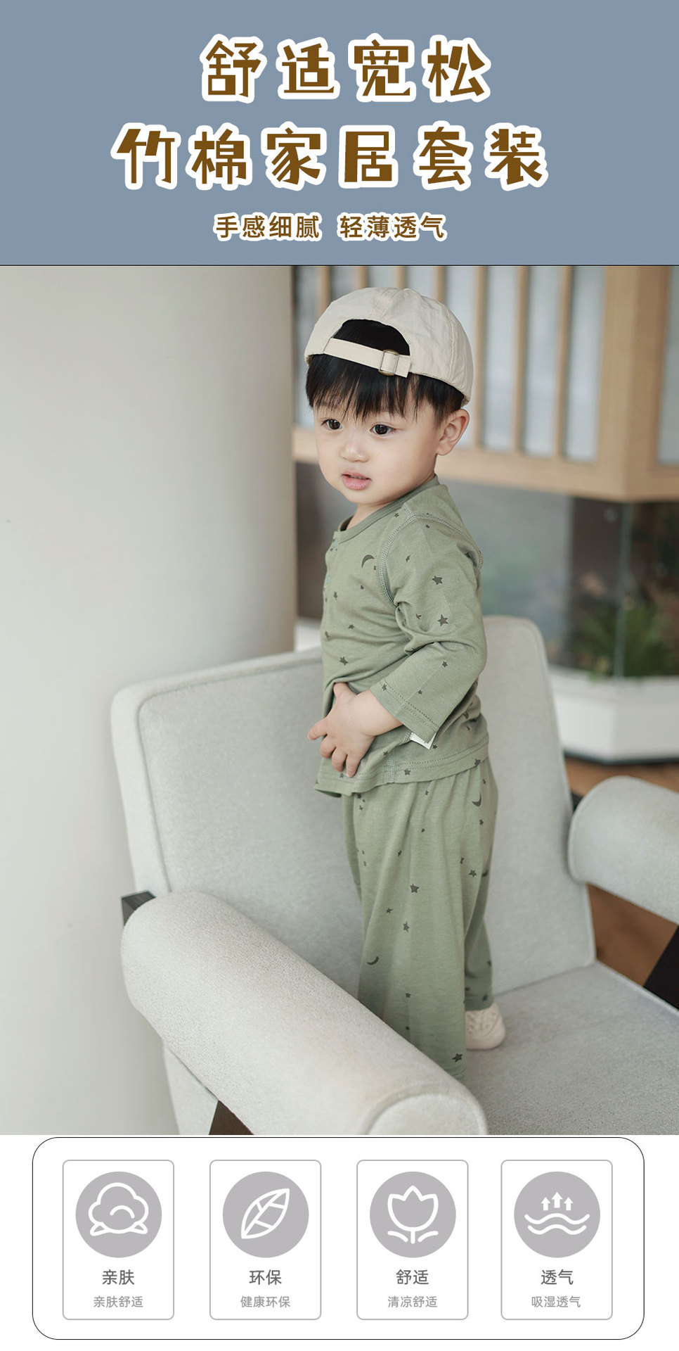A 급 어린이 봄과 여름 대나무면 세트 남녀 아기 통기성 캐주얼 분할 홈 의류 여름 투피스 잠옷스토어 가기