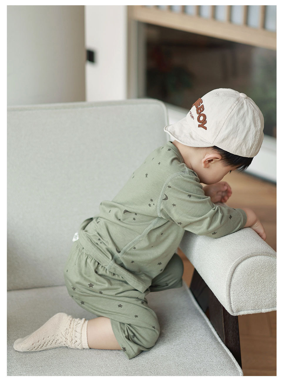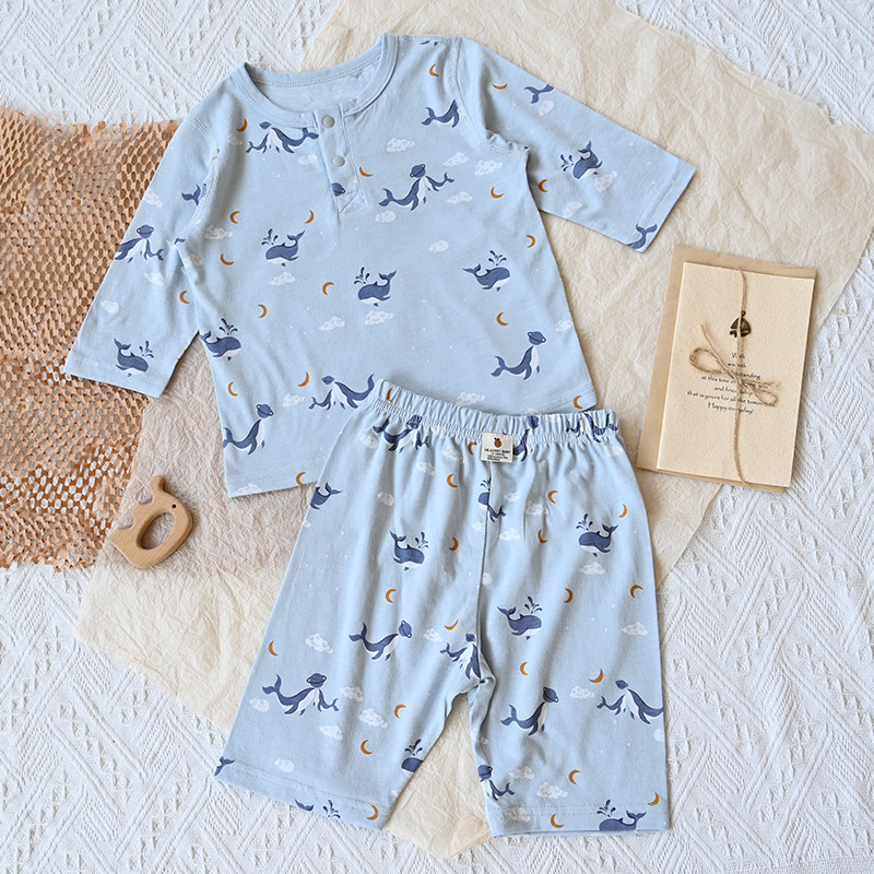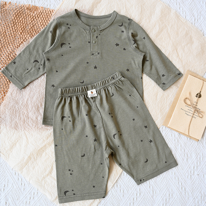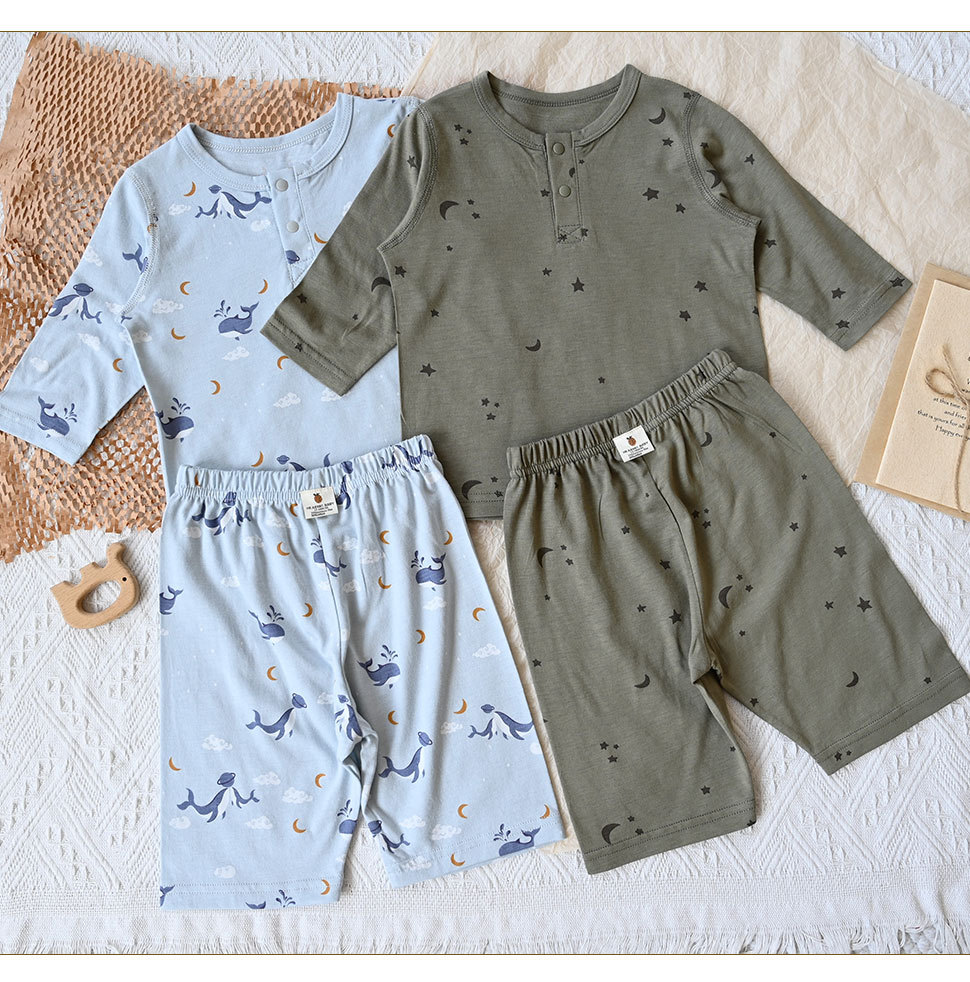 A 급 어린이 봄과 여름 대나무면 세트 남녀 아기 통기성 캐주얼 분할 홈 의류 여름 투피스 잠옷