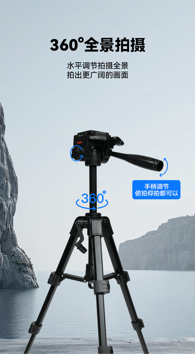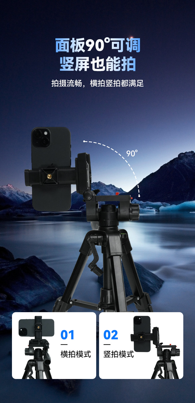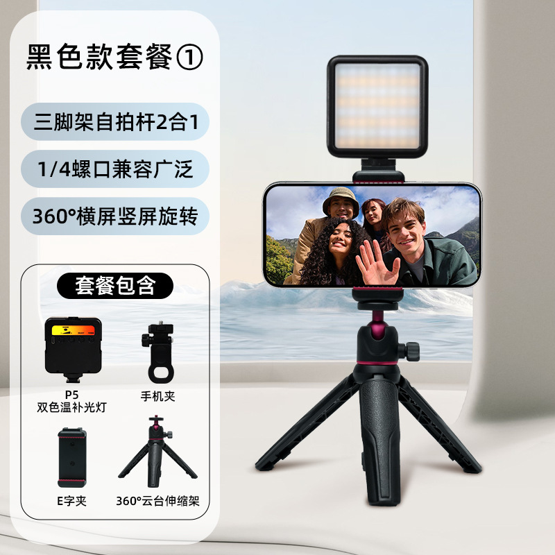 • P5 [표준 3색 온도] 필라이트 + 360 짐벌 텔레스코픽 삼각대 [블랙] + E자형 클립 + 휴대폰 클립